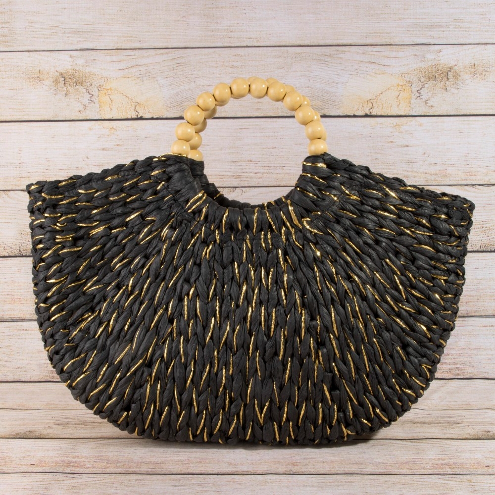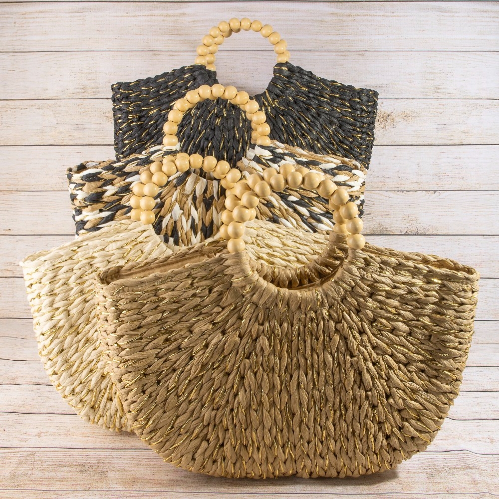 • This season's must-have tote bag, this tote bag contains a special straw braided half moon round handle design. Unleash the power of style with this versatile tote bag, perfect for enhancing the charm of your wardrobe. Available in B, BEI, KH, MUL. This item is sold in packs of 1.