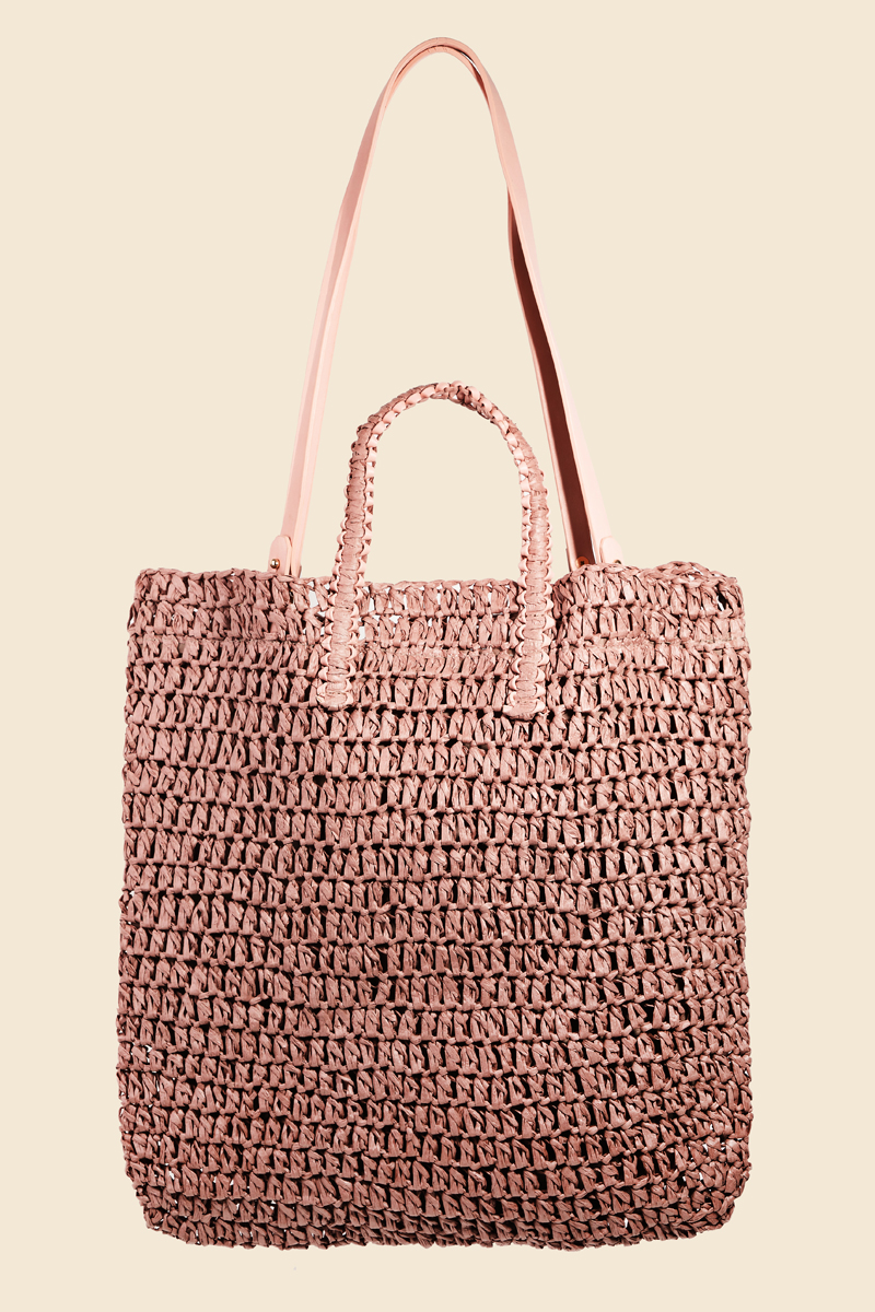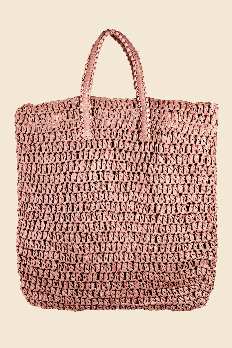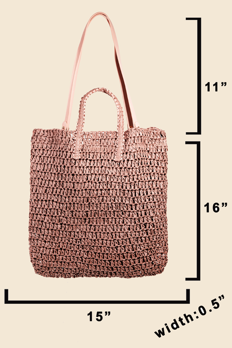 • A new must have tote bag that is made with a straw braided square tote bag design. A must have in season accessory for this Spring season! Available in BEI, NAT and PIN. This item is sold in packs of 1.