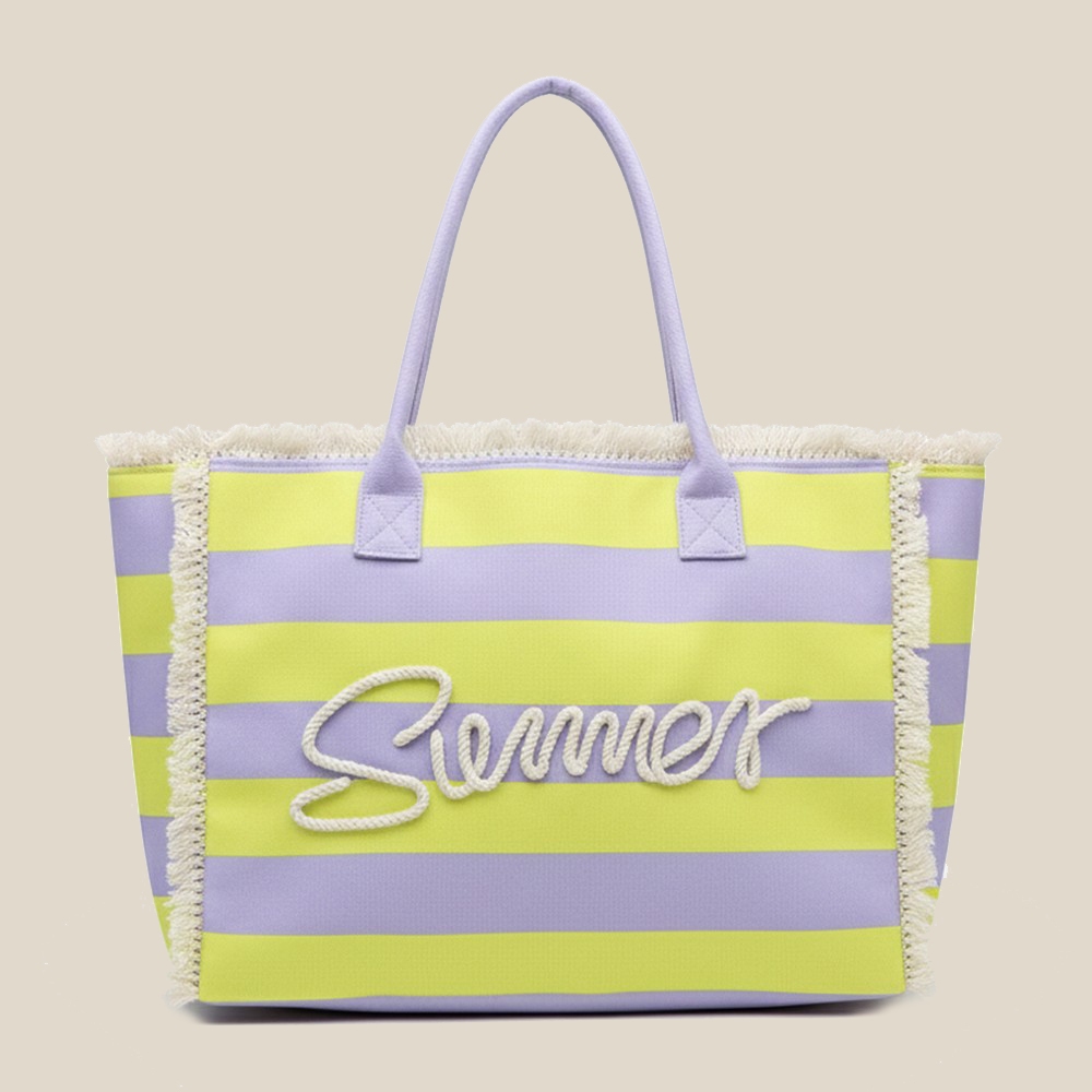 - A contemporary masterpiece, this tote bag presents a striking striped fringe trim summer print design. This item is ideal for those who want to add some personality to their wardrobe without being too bold. Available in BLLM, LVYE, PKGN, RBPK. This item is sold in packs of 1.