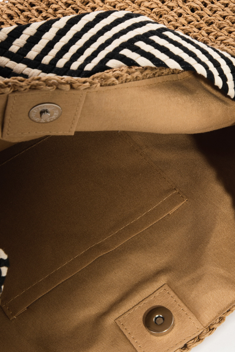 The perfect way to elevate any outfit, this tote bag boasts a magnificent striped strap straw braid bag design. Perfect for any occasion, this versatile tote bag will enhance any outfit you wear. Available in IV and KA. This item is sold in packs of 1.