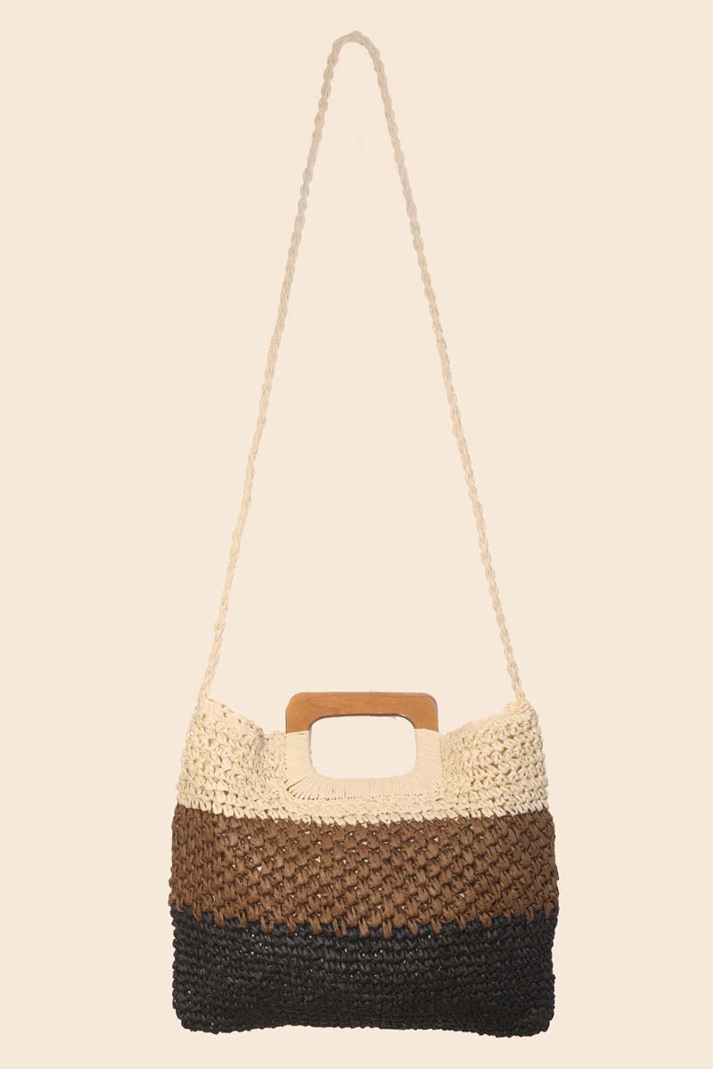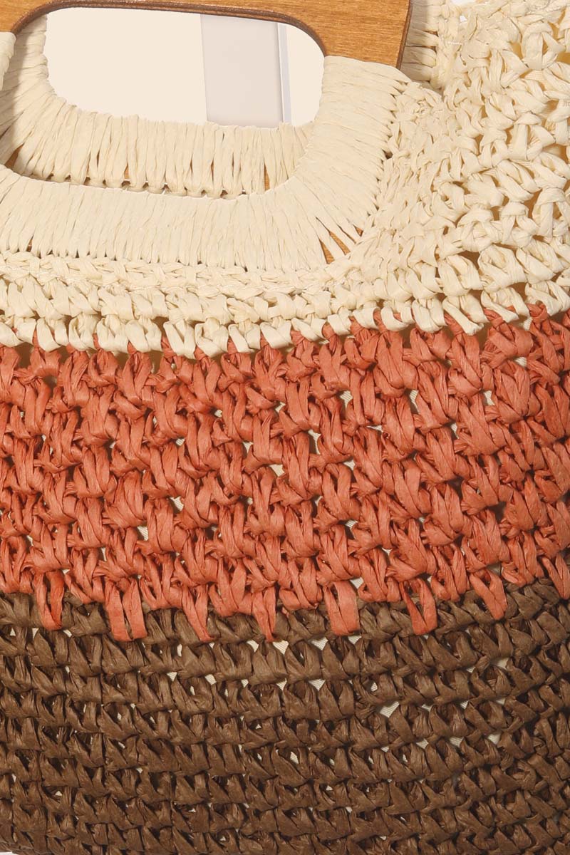 Multi Tone Straw Half Moon Round Handle Tote Bag