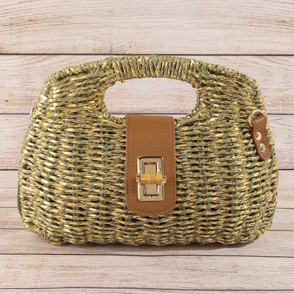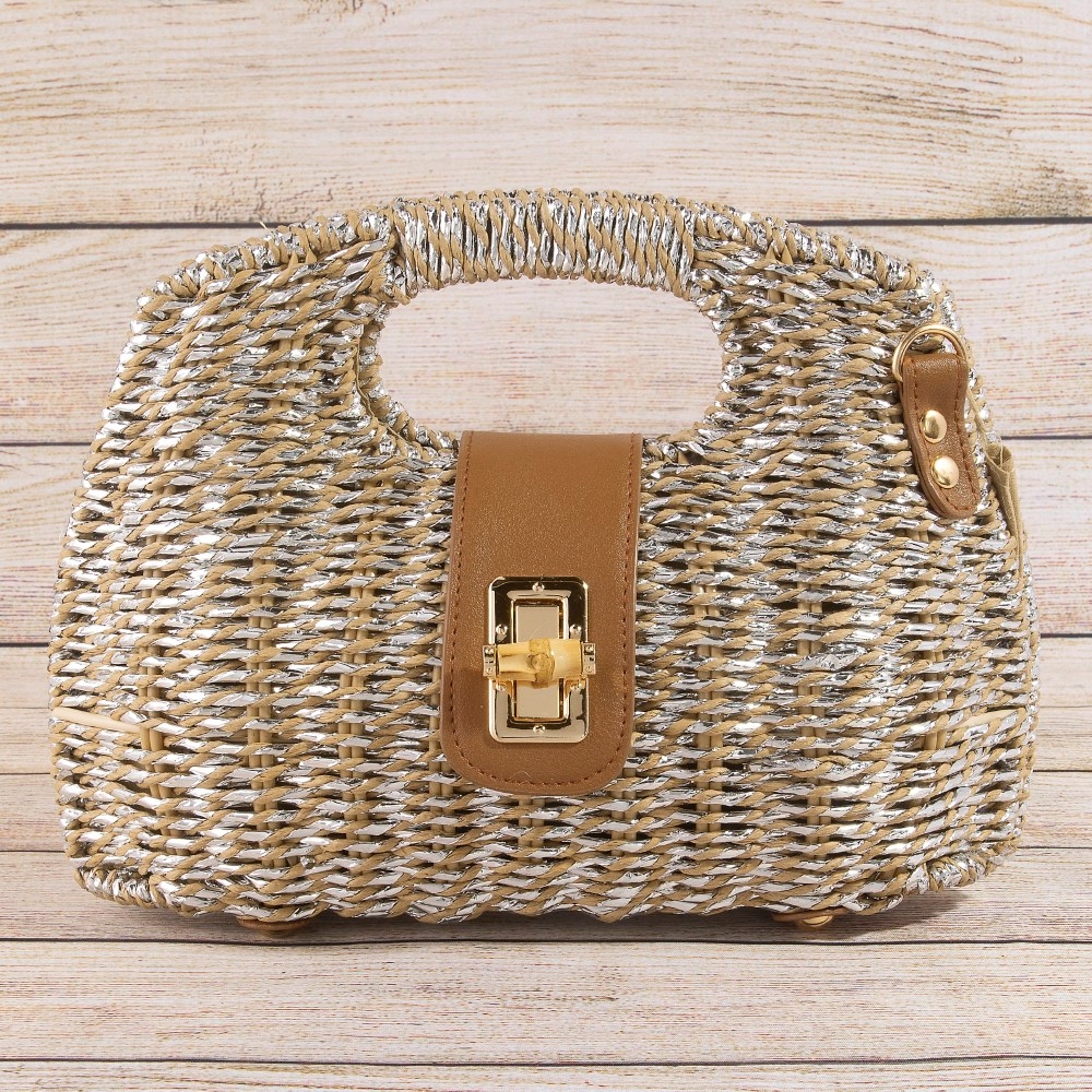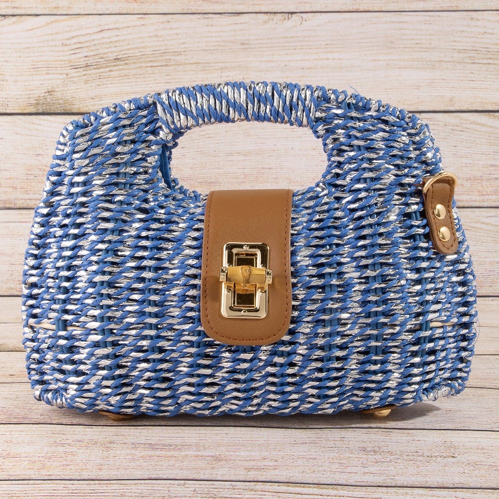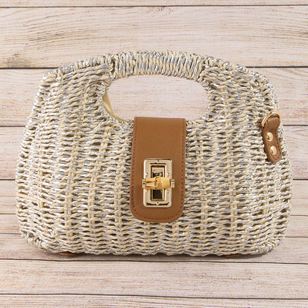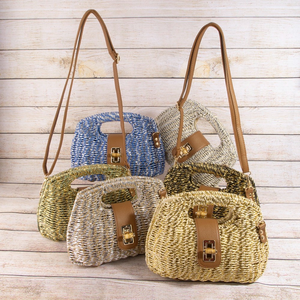 A unique and stylish piece that sets you apart, this hand bag displays a unique two tone straw woven handbag design. Make a lasting impression with this versatile hand bag, a subtle yet impactful addition to your fashion repertoire. Available in B, BEI, BL, GR, KH, W. This item is sold in packs of 1.
