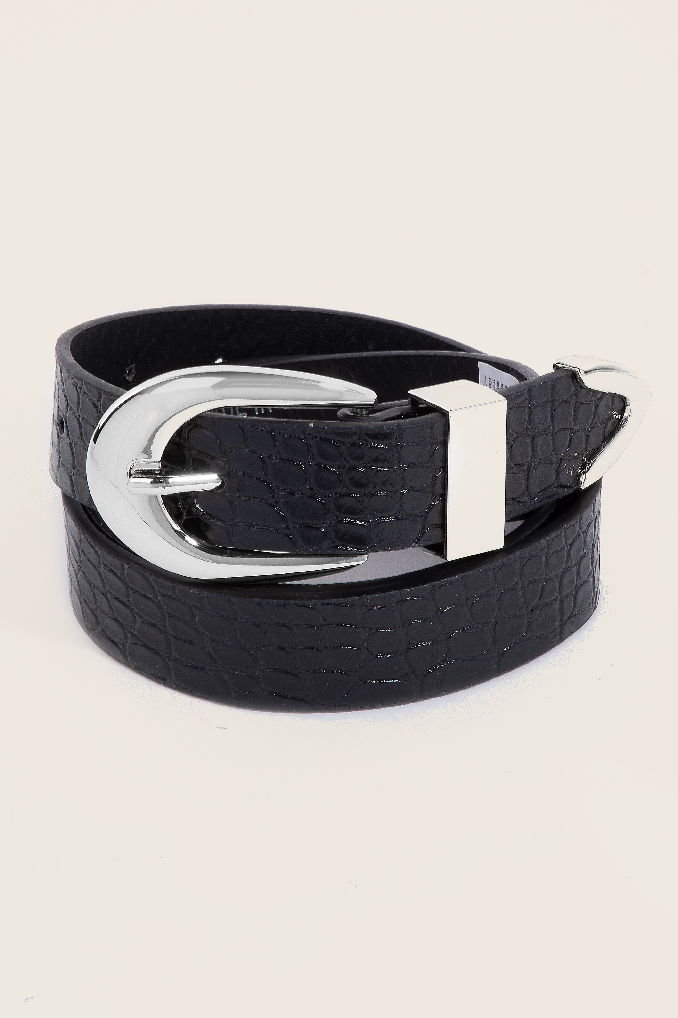 Unleash your inner fashionista, this leather belt features an exceptional alligator skin detail vegan design. This leather belt is a great way to add some flair to your outfit without going over the top. Available in IV. This item is sold in packs of 12.