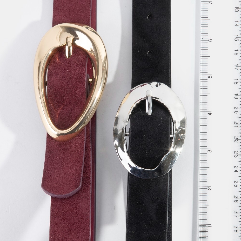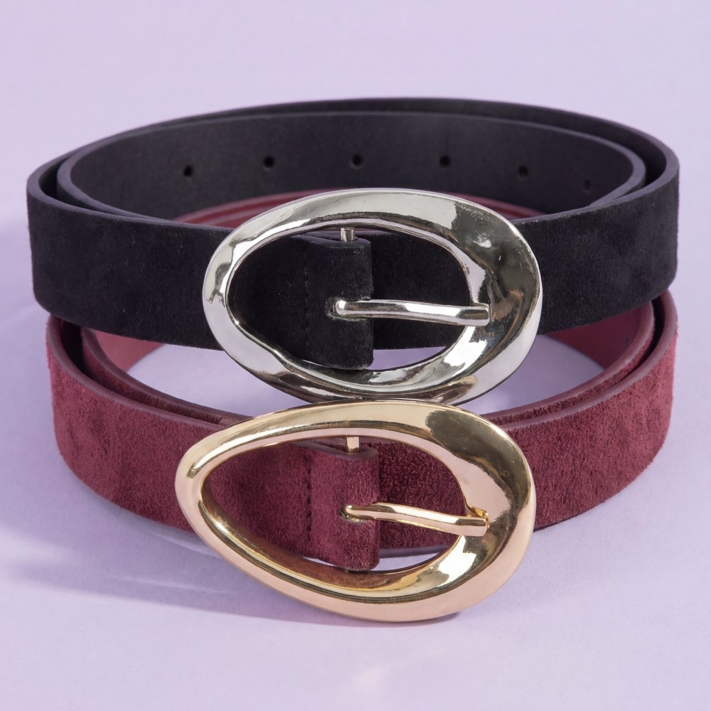 • The perfect way to complete any outfit, this belt set contains a special assorted two piece oval buckle vegan leather design. Achieve a perfect blend of style and sophistication with this versatile belt set, a fashion-forward choice for any occasion. This item is sold in packs of 12.