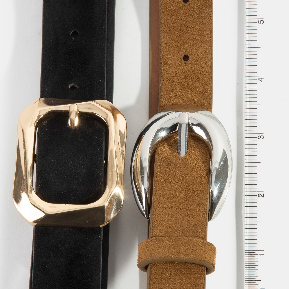 Assorted Two Piece Oval Buckle Vegan Leather Belt Set