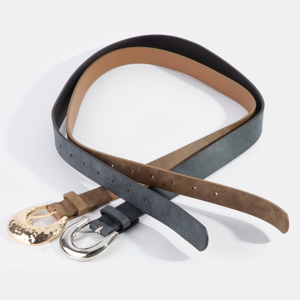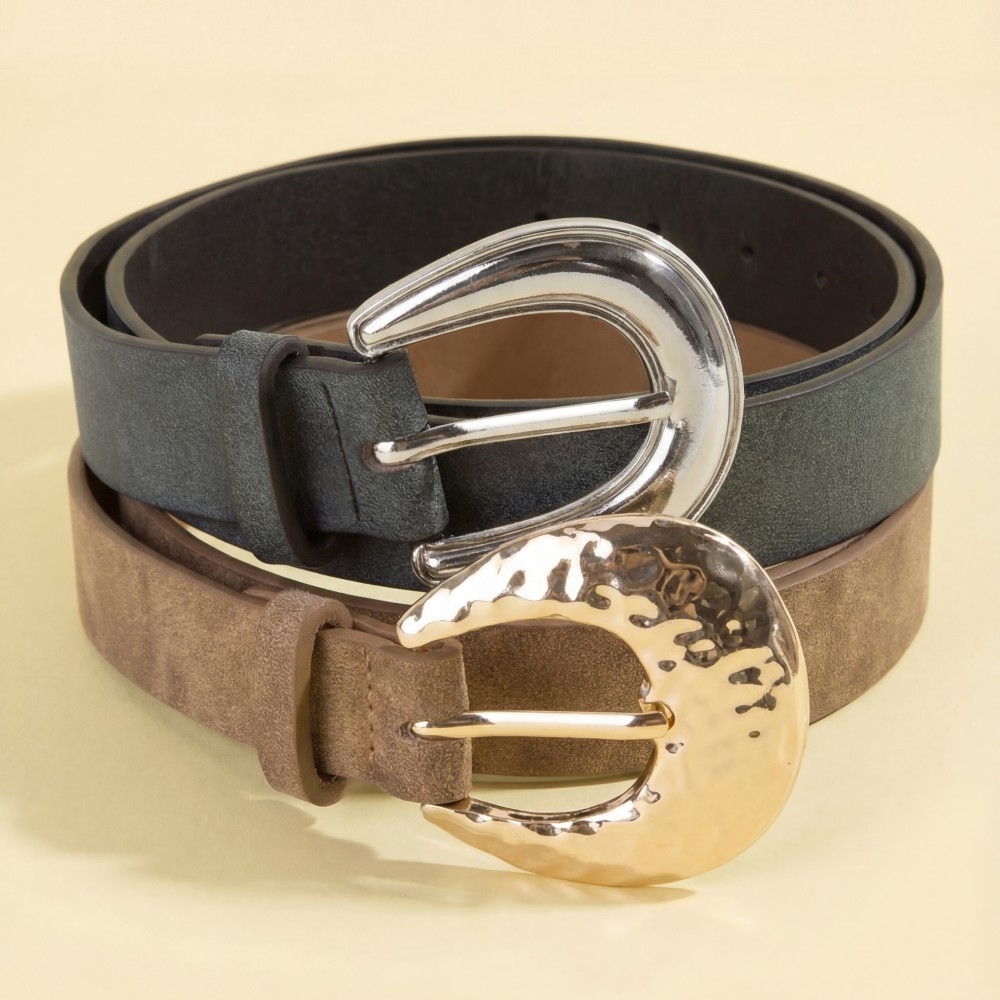 - Effortlessly elevate your outfit, this belt set features an exceptional black and brown vegan leather design. A stylish belt set that's perfect for complementing your favorite outfit. This item is sold in packs of 1.