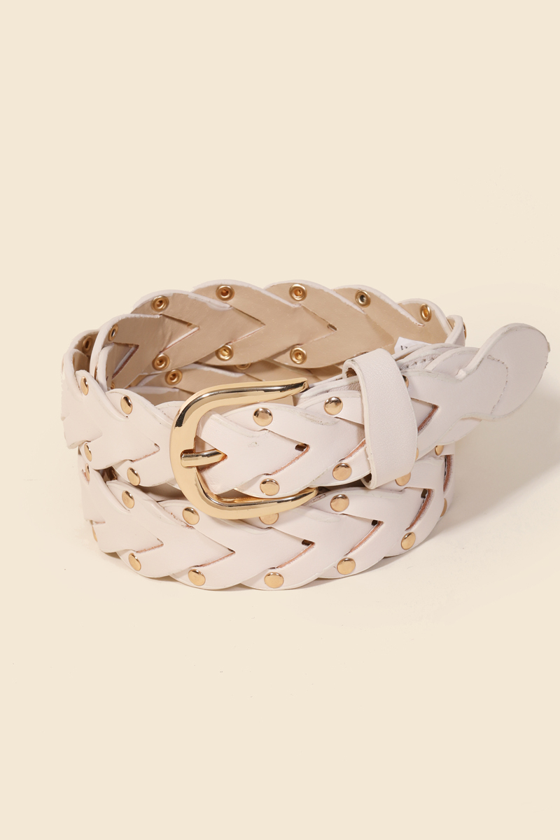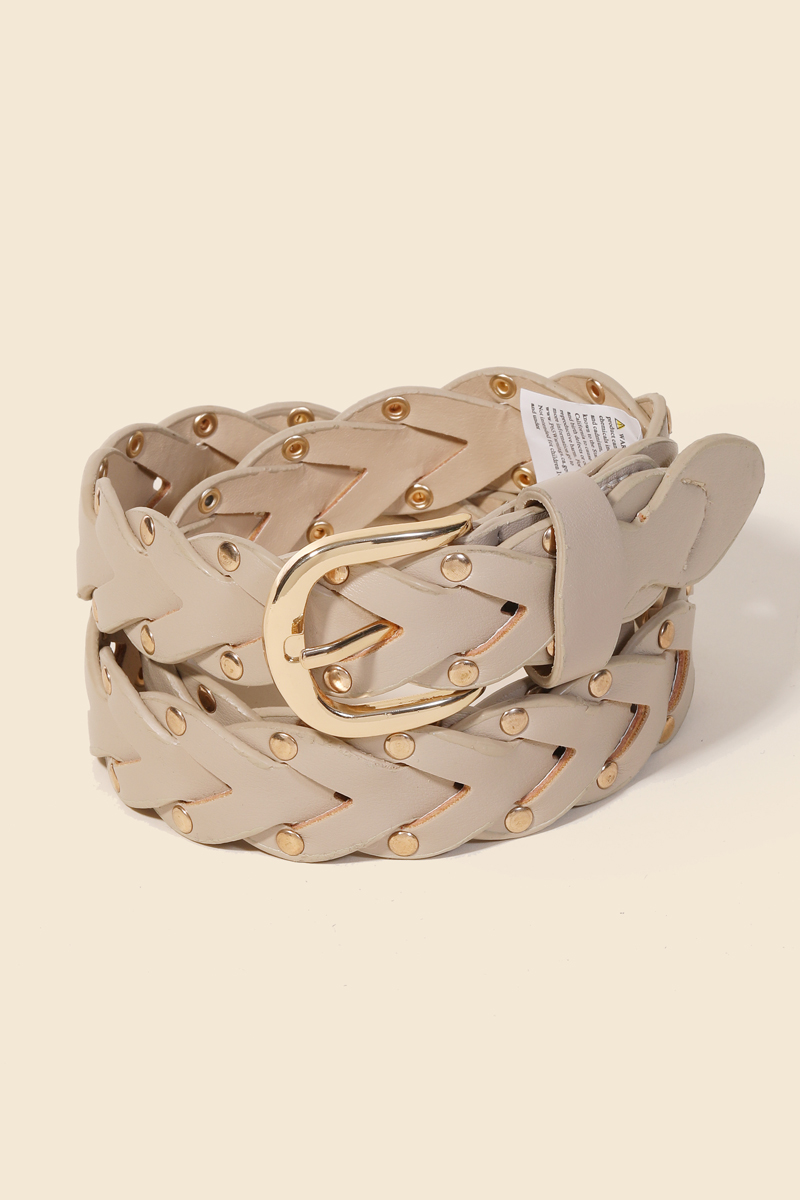 • A must-have addition to any belt collection, this belt presents a striking faux leather braided design fashion design. Transform your outfit into a fashion masterpiece with this versatile belt, an essential for the style-conscious individual. Available in BK, CA, IV and KA. This item is sold in packs of 1.