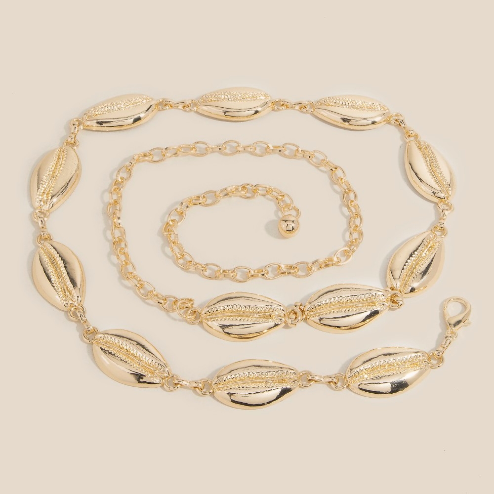 A true work of art, this chain belt features a distinct cowrie seashell design. Perfect for adding some personality and flair to your wardrobe, this chain belt is a must-have. Available in G, S. This item is sold in packs of 1.
