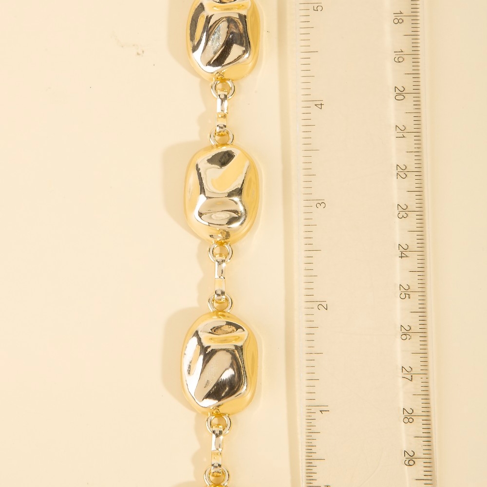 - This piece is the epitome of sophistication and elegance, this chain belt incorporates a flawless warped metallic oval link design. Transform your outfit from ordinary to extraordinary with the touch of elegance provided by this versatile chain belt. Available in G, S. This item is sold in packs of 1.