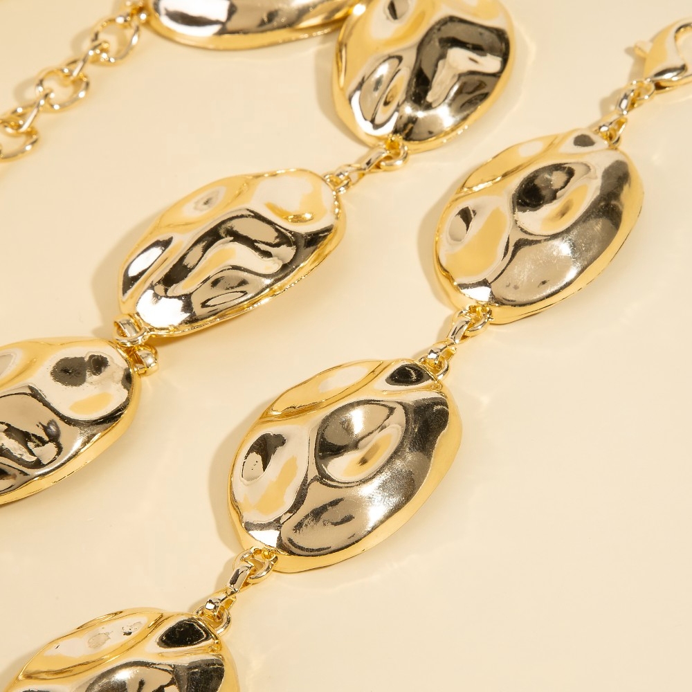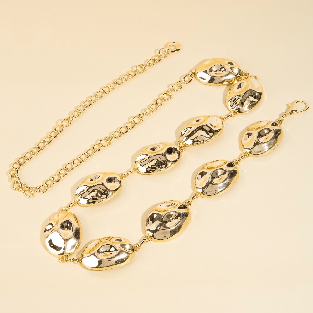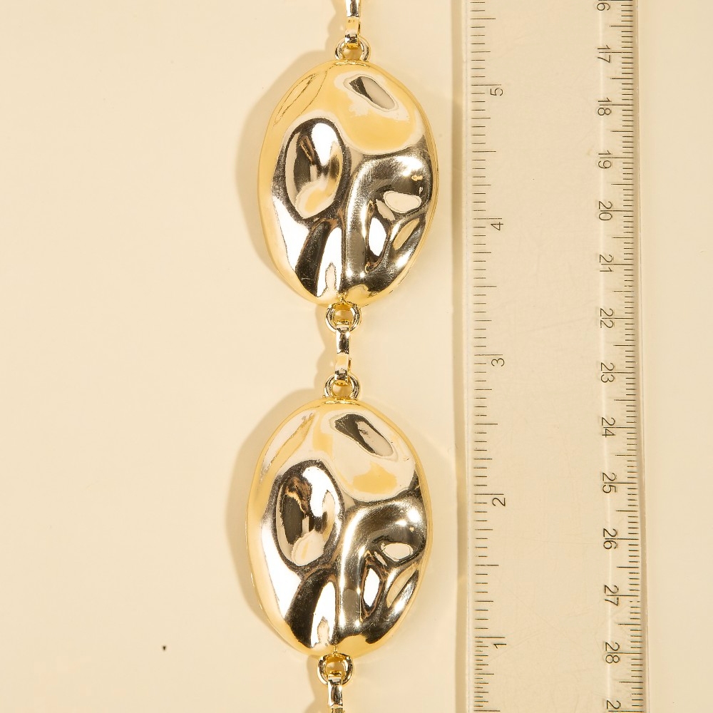 Stay on-trend and stand out from the crowd, this chain belt encompasses a grand warped oval disc design. Unleash the potential of your wardrobe with this versatile chain belt, ensuring a touch of elegance in every ensemble. Available in G, S. This item is sold in packs of 1.