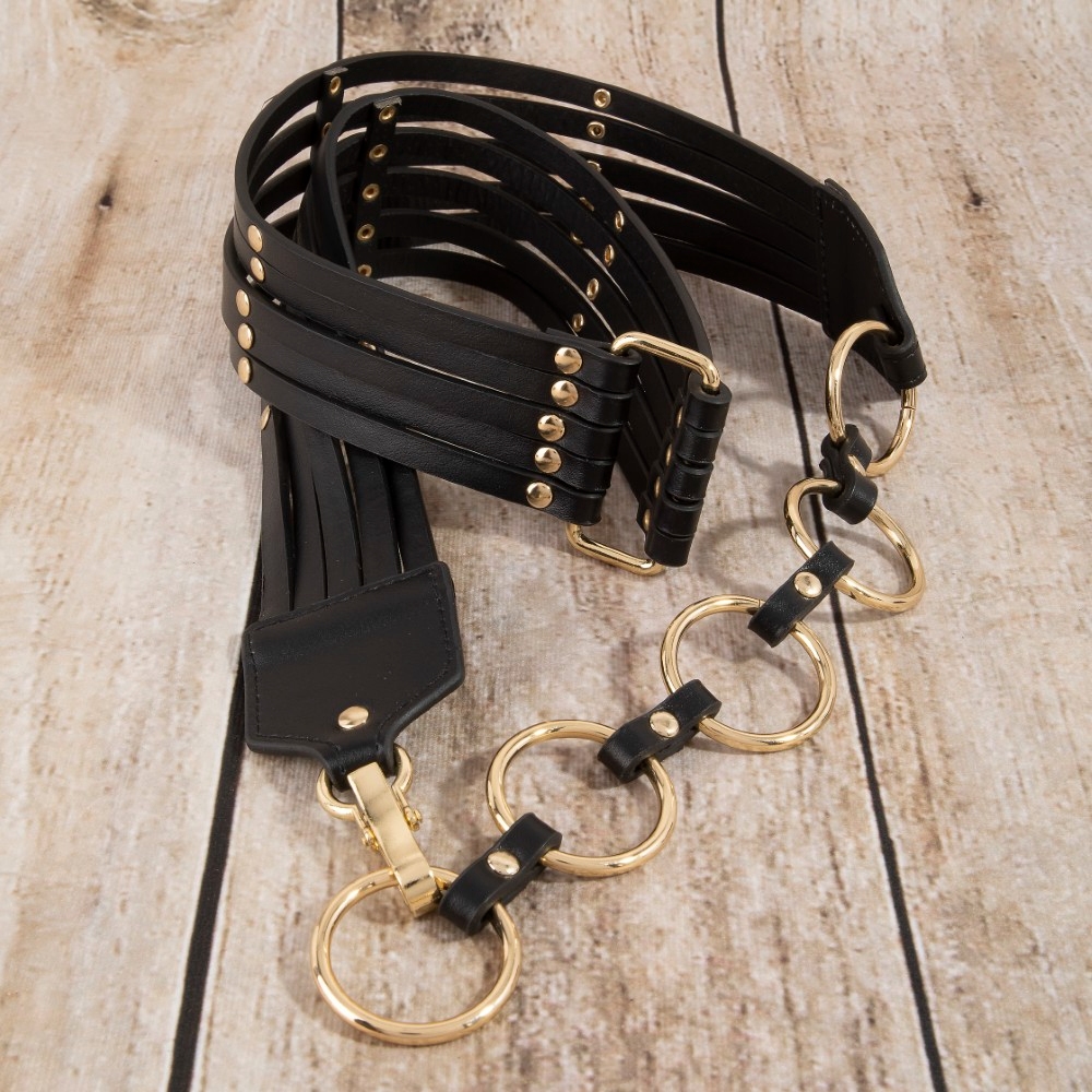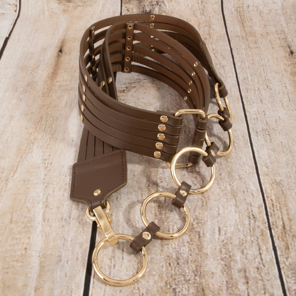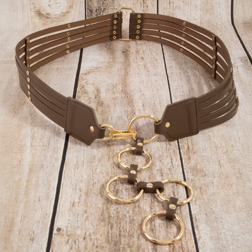 • The perfect way to add some edge to your look, this leather belt adds a distinctive circle link layered vegan design. This versatile leather belt adds a touch of elegance to any outfit. Available in GBK, GDBR, SBK, GBK, GDBR and SBK. This item is sold in packs of 12.