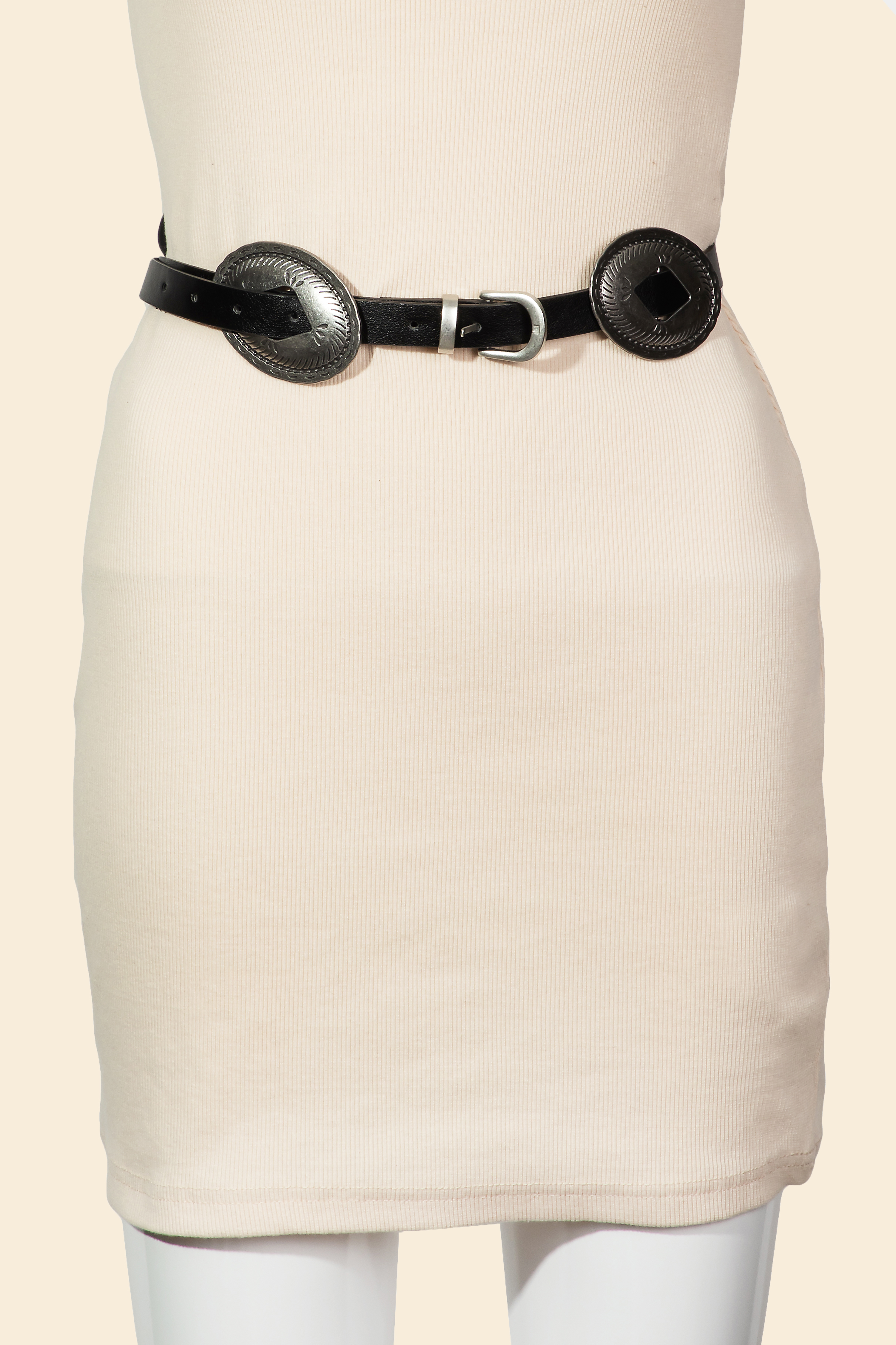 Western Concho Disc Buckle Vegan Leather Belt