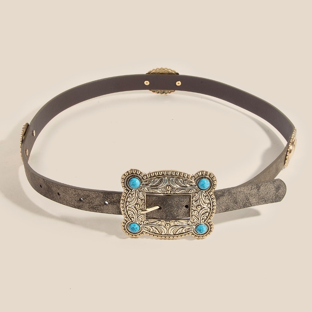 Western Round Turquoise Buckle Concho Belt