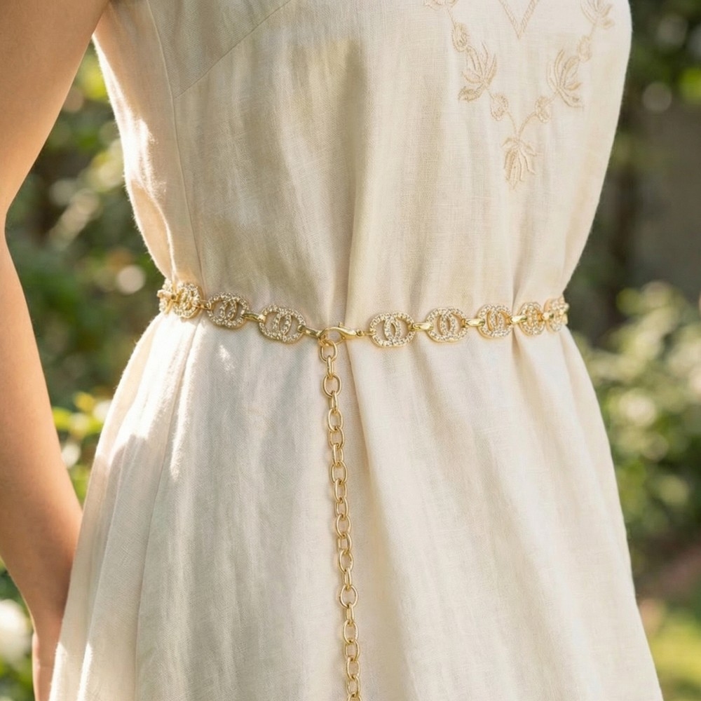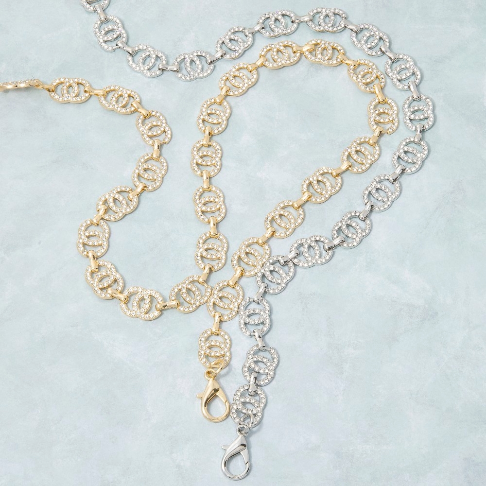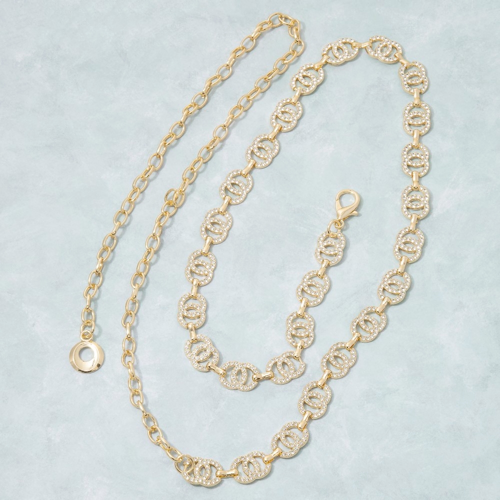 A timeless piece that you'll wear for years to come, this chain belt adds a distinctive cz mariner double circle link design. Add some personality to your outfit with this stylish chain belt. Available in G, RO. This item is sold in packs of 1.