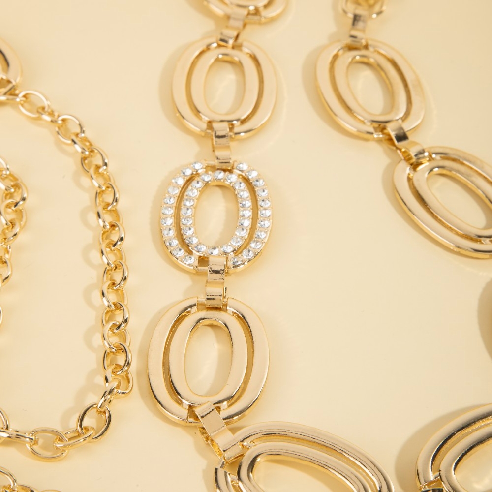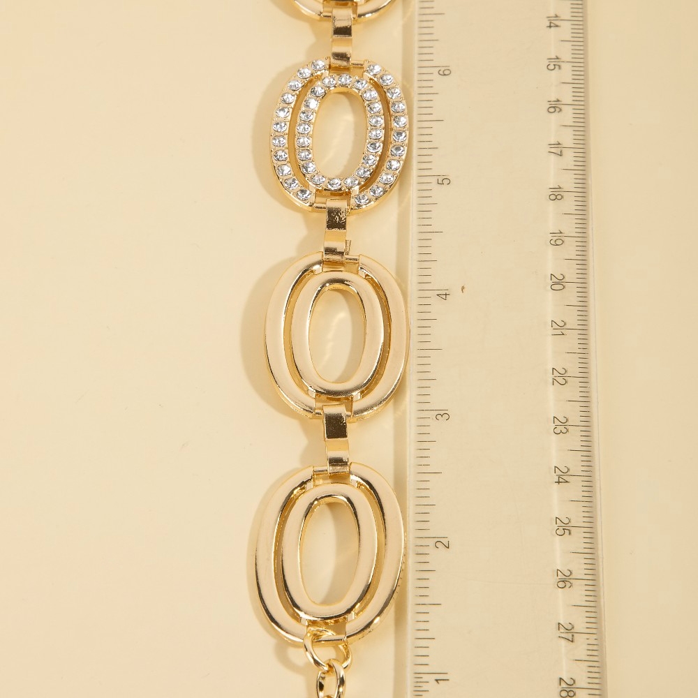 Stay on-trend and ahead of the fashion curve, this chain belt radiates a sleek double ovals design. Add a touch of glamour to your wardrobe with this versatile chain belt, perfect for enhancing the elegance of any look. Available in G.
