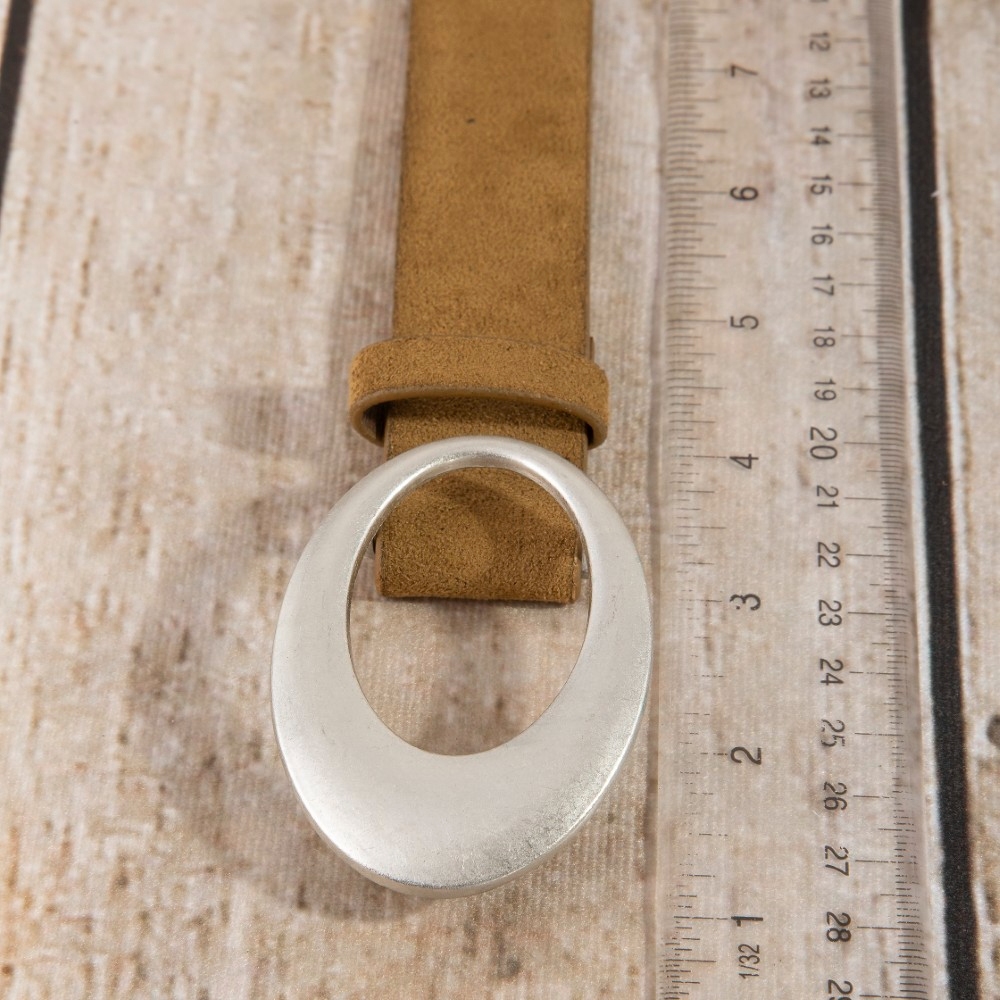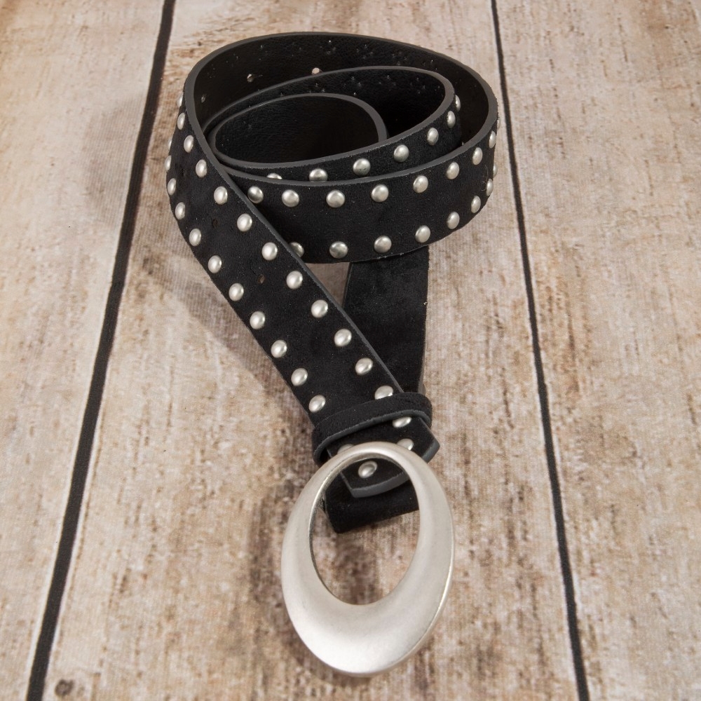 Hammered Oval Buckle Embroidered Vegan Leather Belt