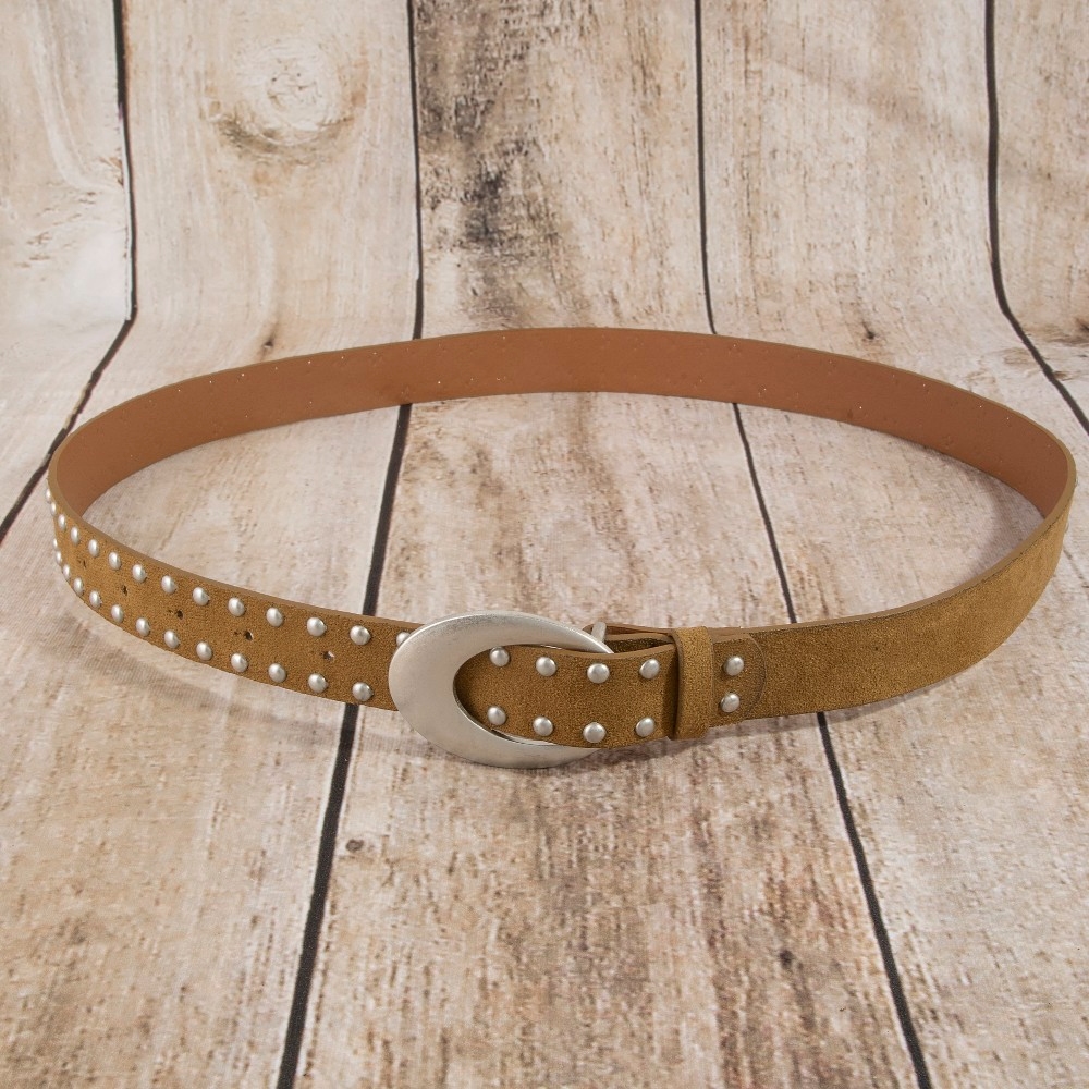 • Upgrade your leather belt game, this leather belt adds a distinctive double studded trim vegan design. Take your style to the next level by incorporating this versatile leather belt, a key element in achieving a polished look. Available in GBK, SBK, SBR. This item is sold in packs of 1.