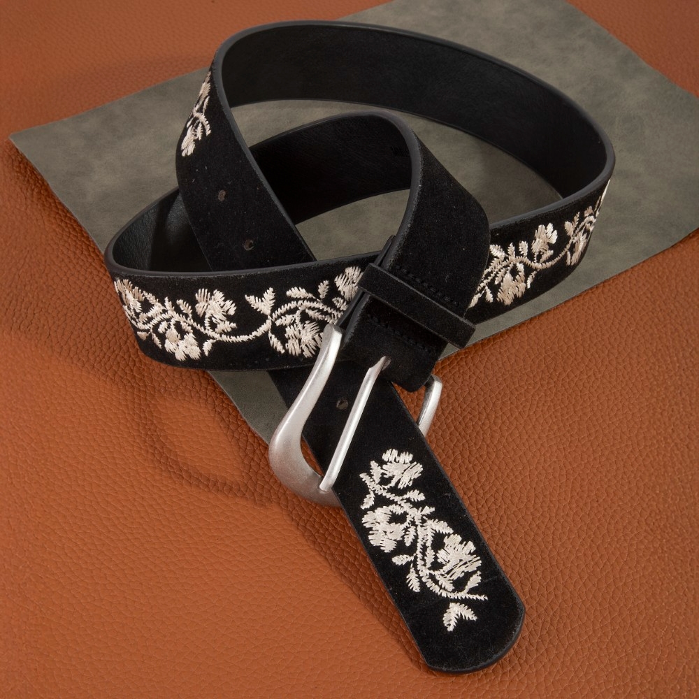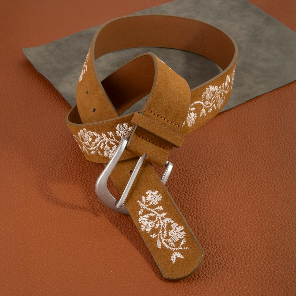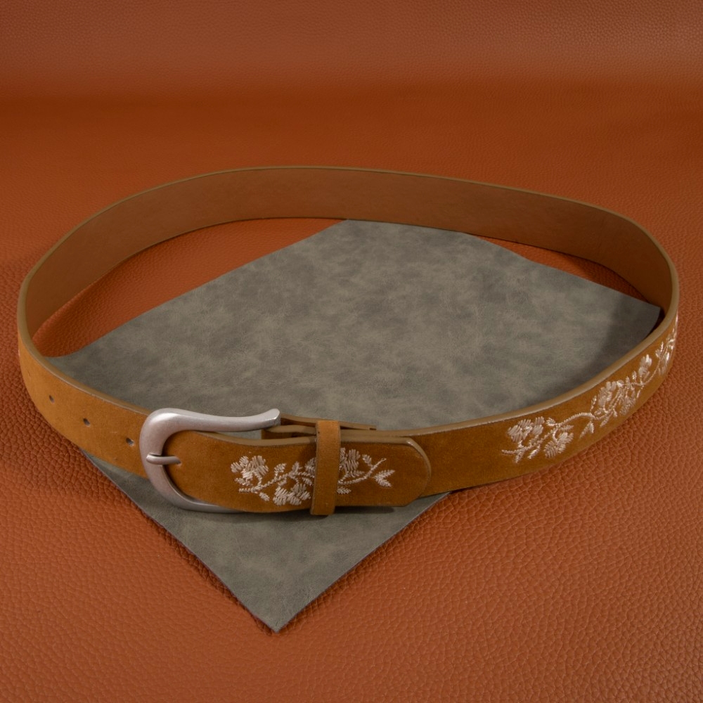 • Perfect for any fashion-forward individual, this leather belt brings a one-of-a-kind embroidered flower vine print vegan design. Unleash the power of style with this versatile leather belt, perfect for enhancing the charm of your wardrobe. Available in BK, KA, LBR. This item is sold in packs of 1.