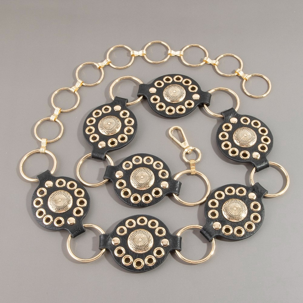 Gold Sun Concho Ring Chain Belt