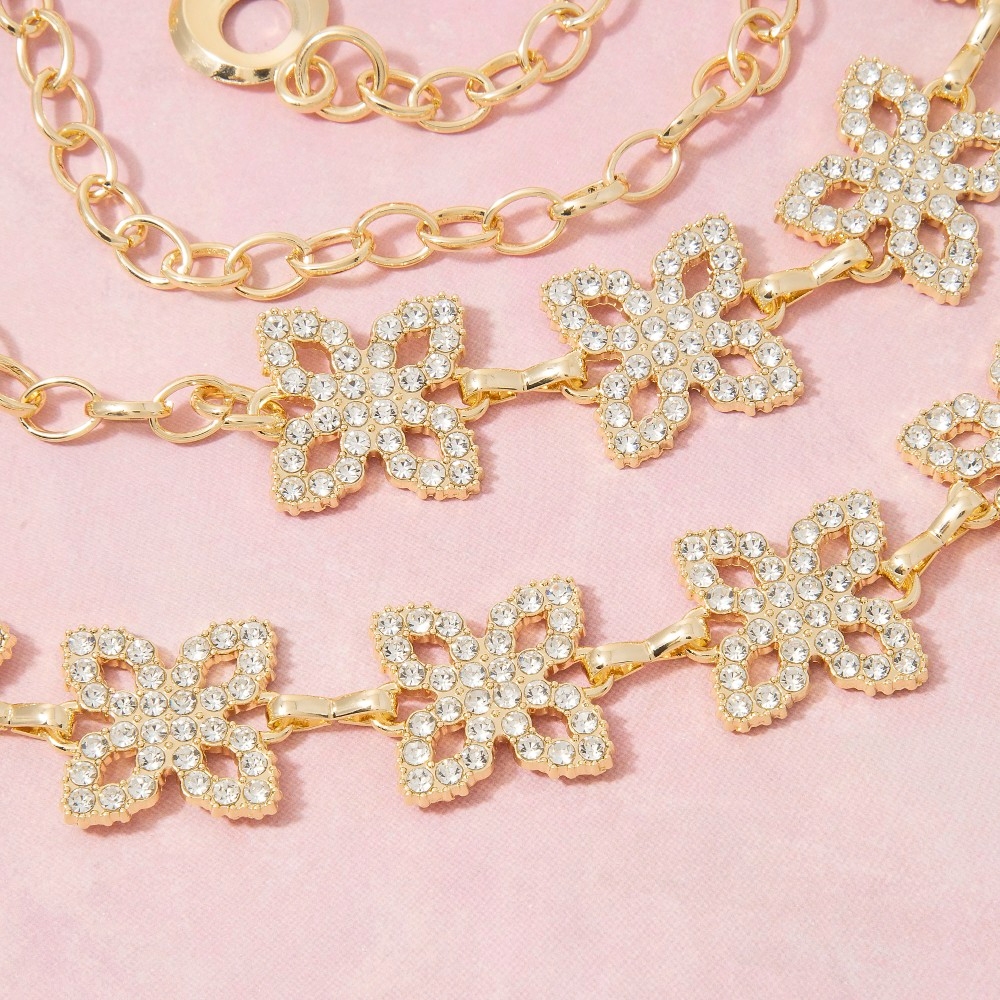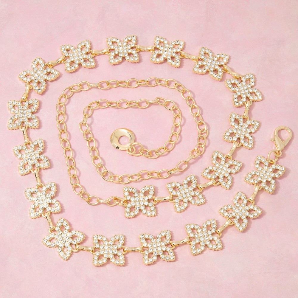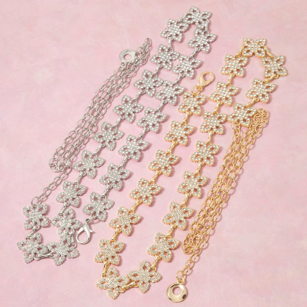 Sleek and modern, this chain belt encompasses a grand gold cubic zirconia clover link design. This chain belt is an effortless way to add some personality to your outfit. Available in G, S. This item is sold in packs of 1.