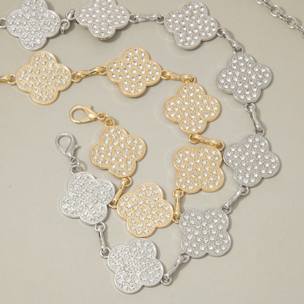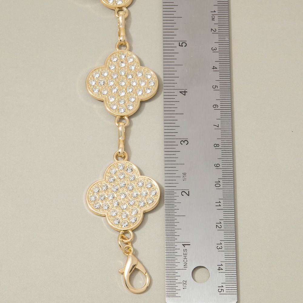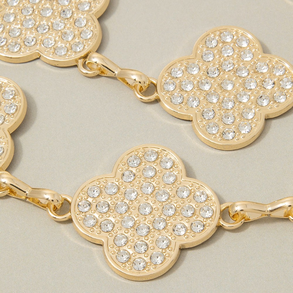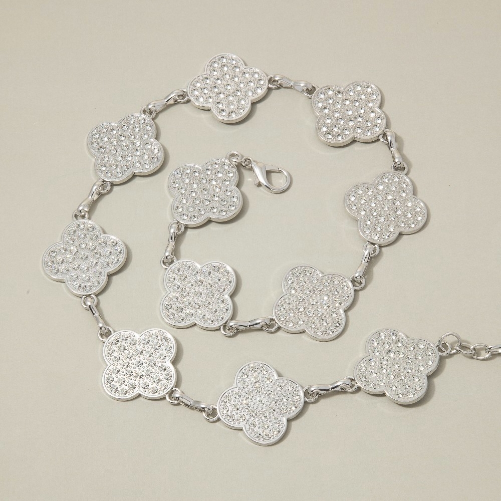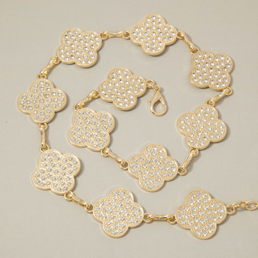 Elevate any look, this chain belt adds a distinctive gold cubic zirconia pave solid clover link design. Redefine your fashion identity with this versatile chain belt, a timeless piece that complements any wardrobe. Available in G, S. This item is sold in packs of 1.