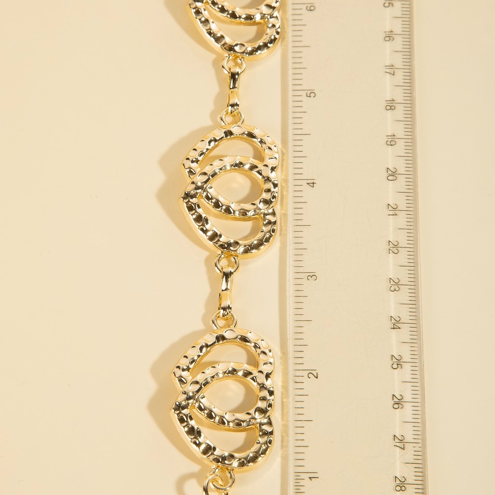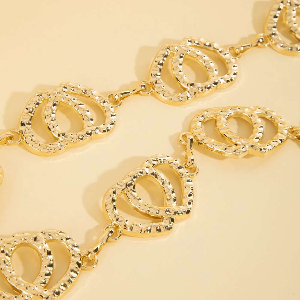 • Stay on-trend and ahead of the fashion curve, this chain belt offers a remarkable hammered double hearts design. This chain belt is the perfect way to add a touch of elegance to any outfit. Available in G.