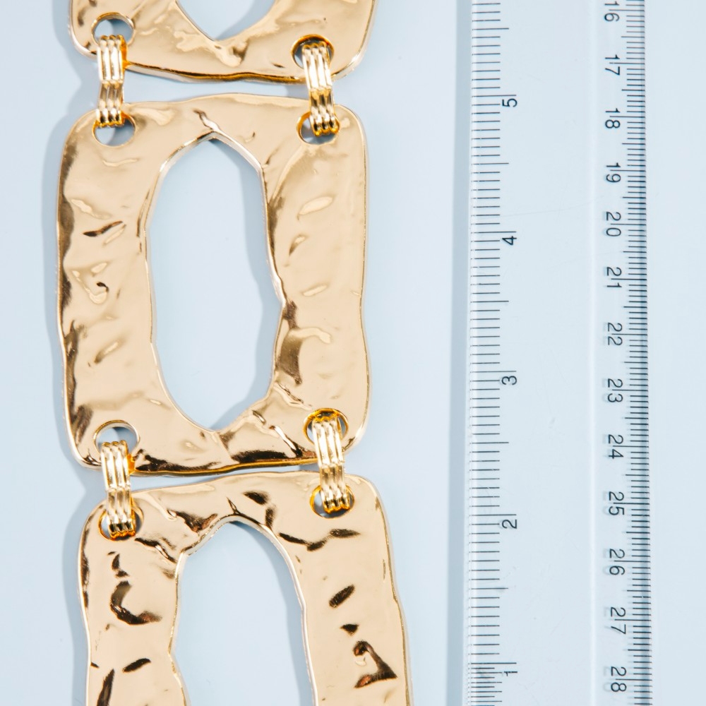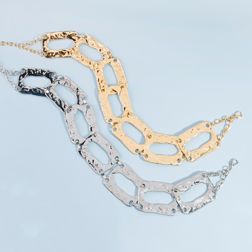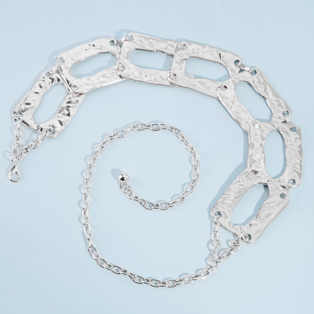 • Perfectly polished and endlessly versatile, this chain belt incorporates a flawless hammered rectangle chain link design. Unleash the potential of your wardrobe with this versatile chain belt, ensuring a touch of elegance in every ensemble. Available in G, S. This item is sold in packs of 1.