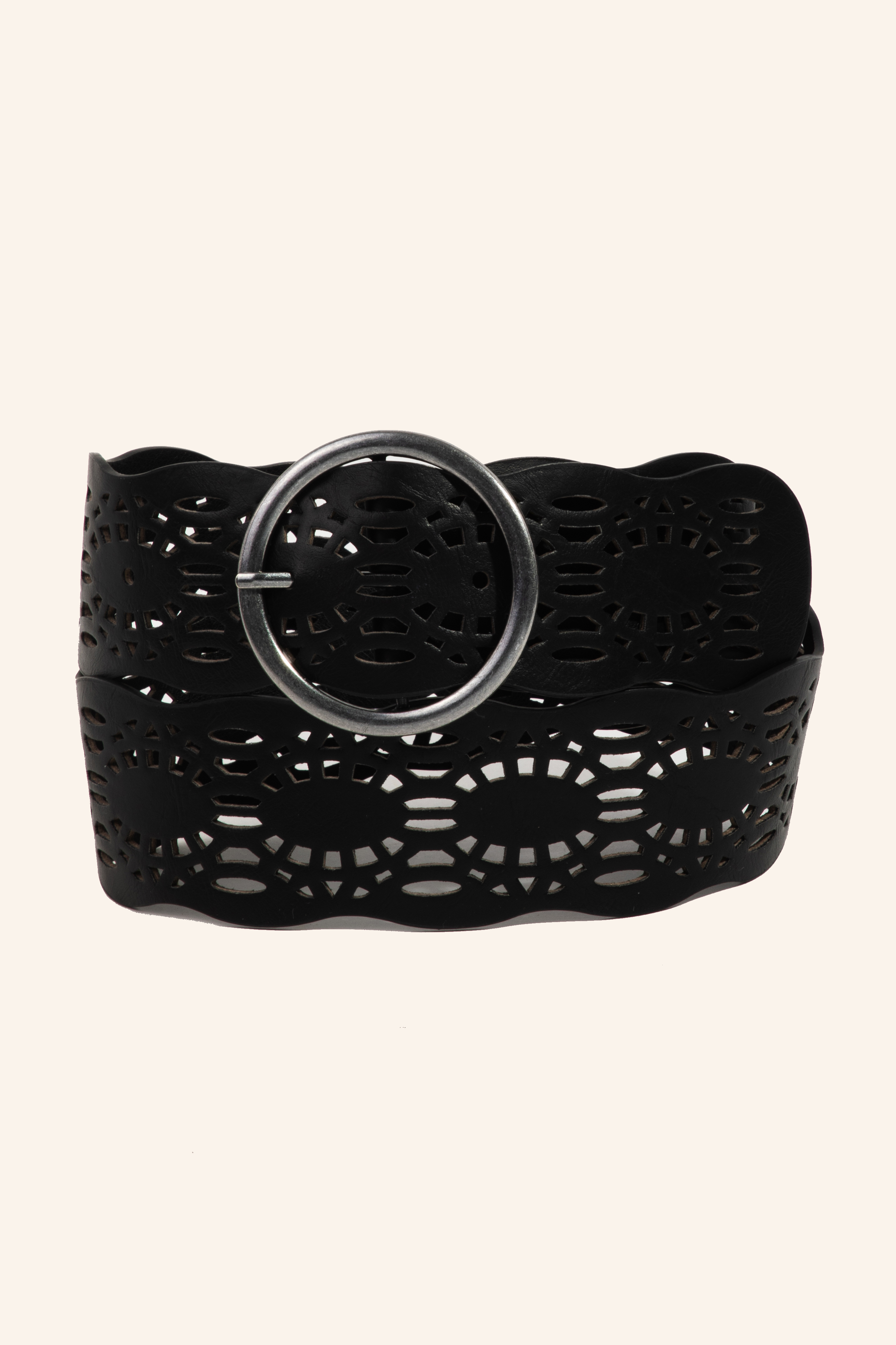 • The perfect way to elevate any outfit, this faux leather belt features an exceptional hollow pattern design. Discover a new level of fashion versatility as this faux leather belt effortlessly elevates the allure of your attire. Available in BK, BR and KA. This item is sold in packs of 1.