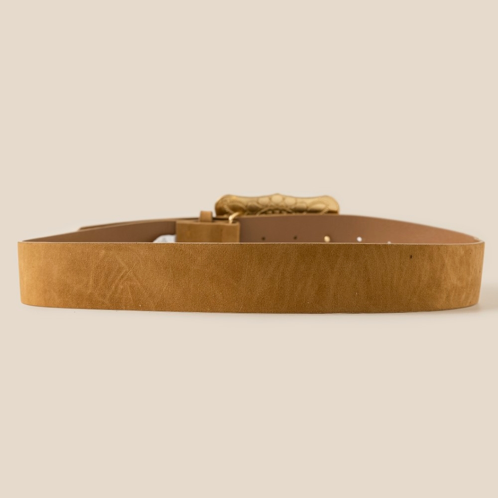 Hammered Oval Buckle Embroidered Vegan Leather Belt