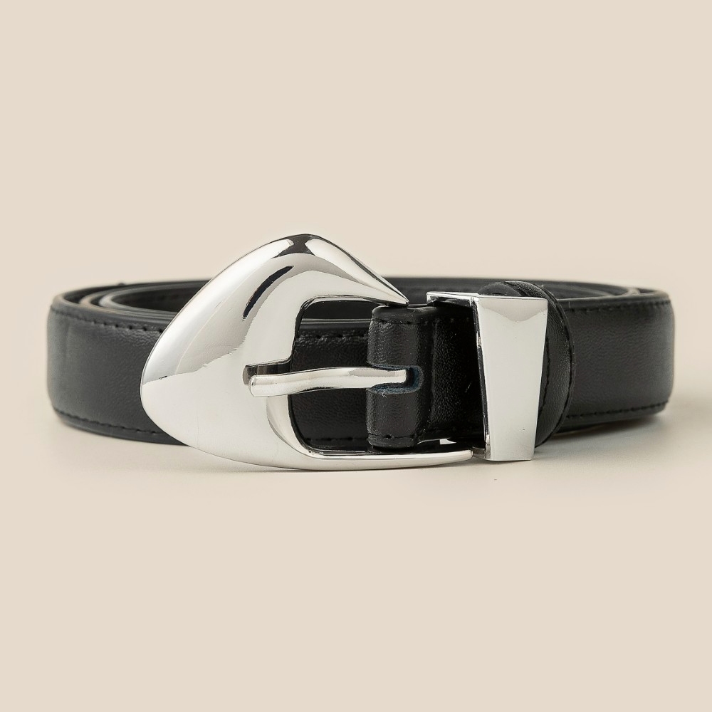 • A bold and daring choice, perfect for those who want to stand out from the crowd, this leather belt showcases an alluring fashion warped buckle design. Infuse your ensemble with a touch of sophistication using this versatile leather belt, a game-changer in the world of fashion. Available in GBK, GBR, SBK, SIV. This item is sold in packs of 1.