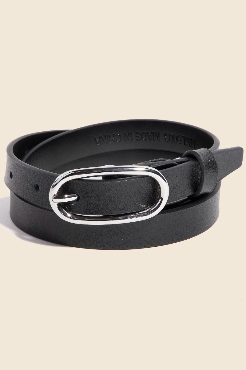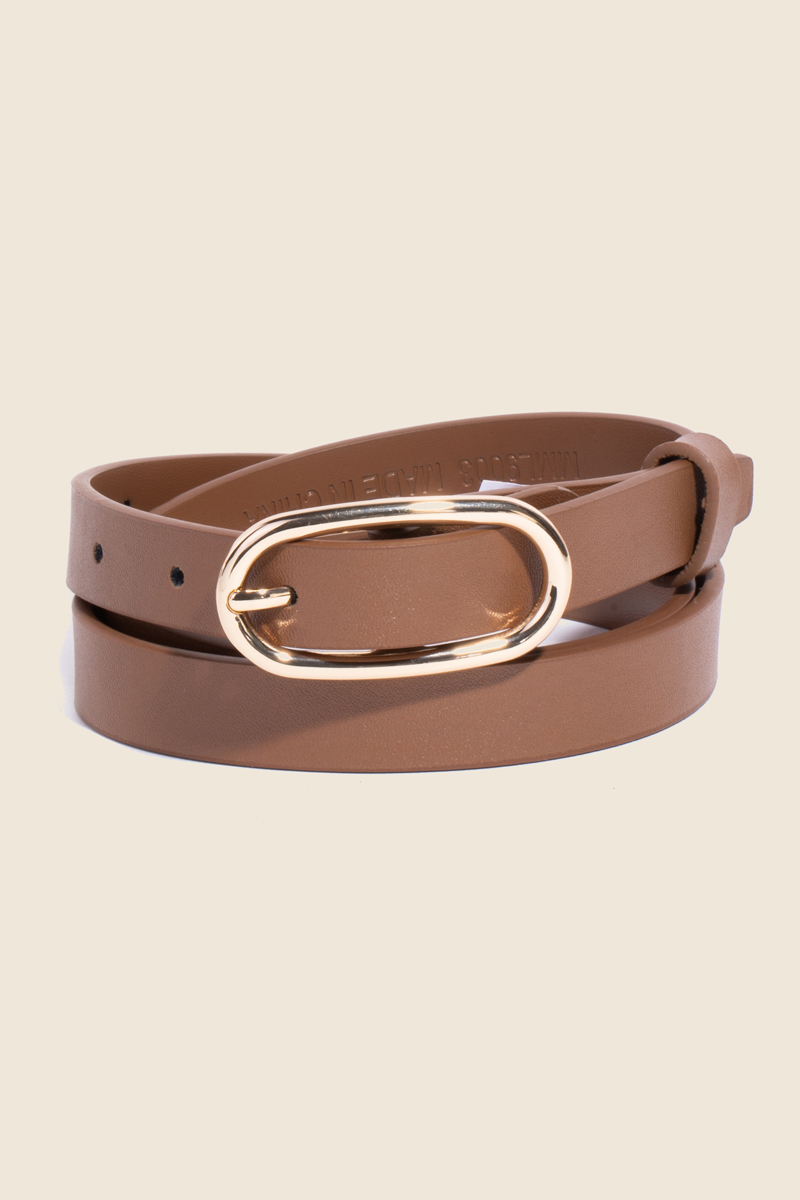• A versatile piece that can be dressed up or down, this leather belt exudes a refined long oval buckle design. Perfect for adding a pop of color or texture to any outfit, this leather belt is a must-have. Available in BR, GBK, SBK, TP and IV. This item is sold in packs of 1.