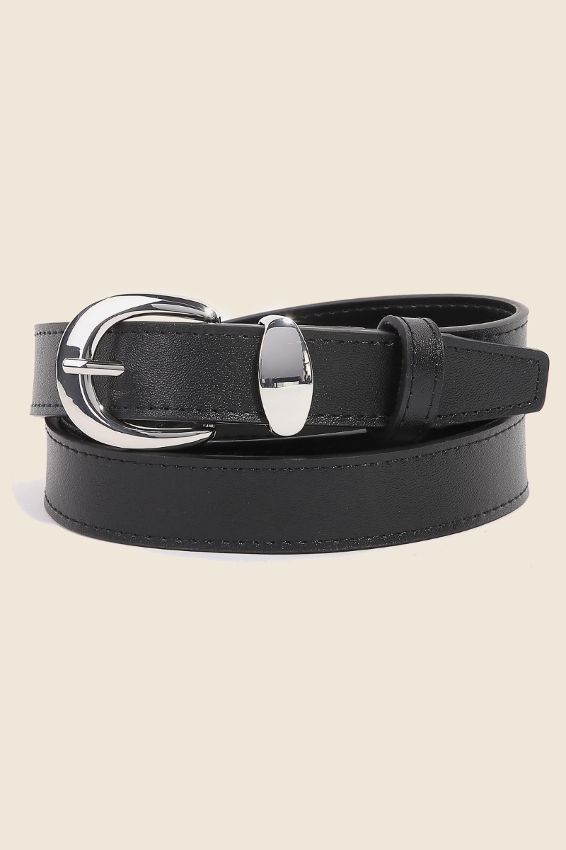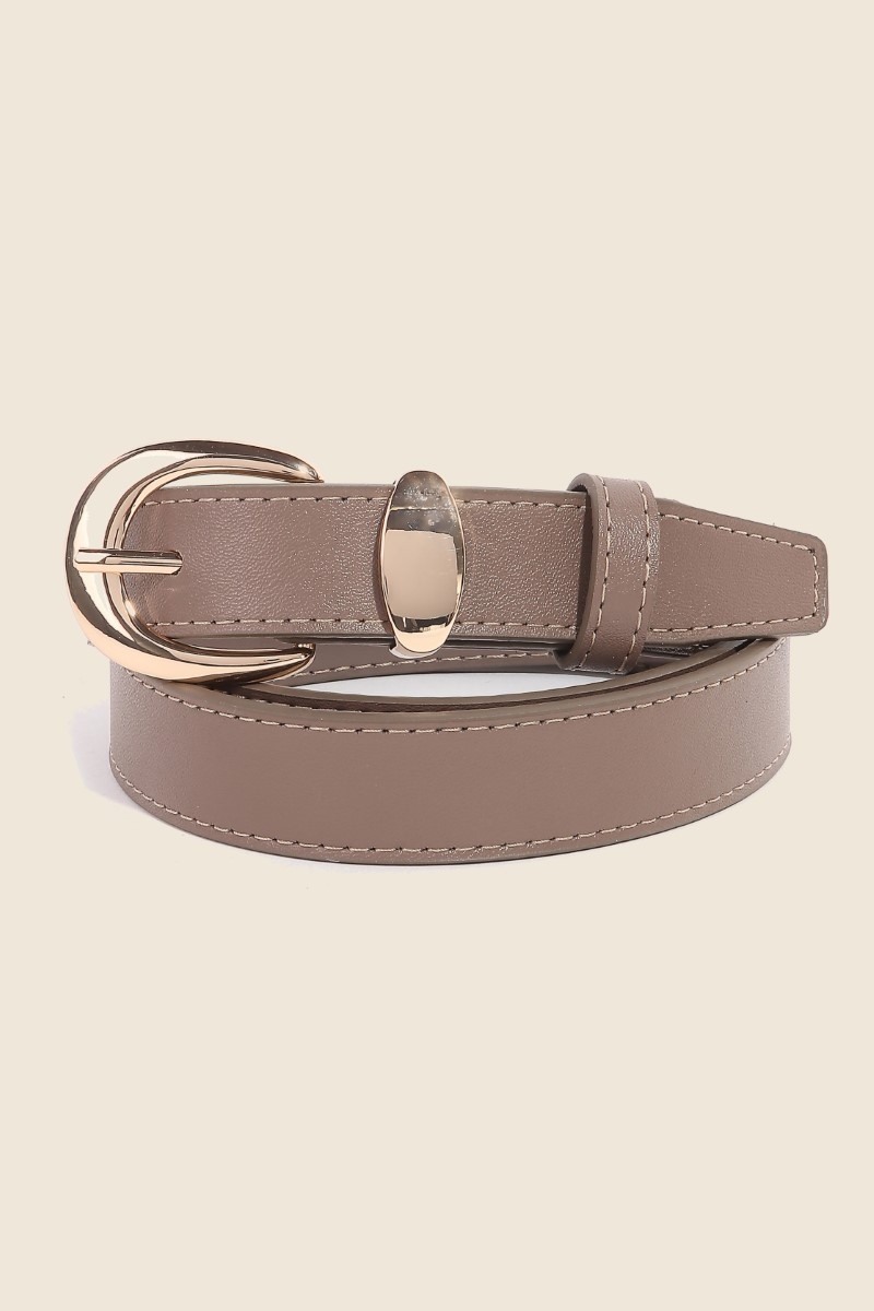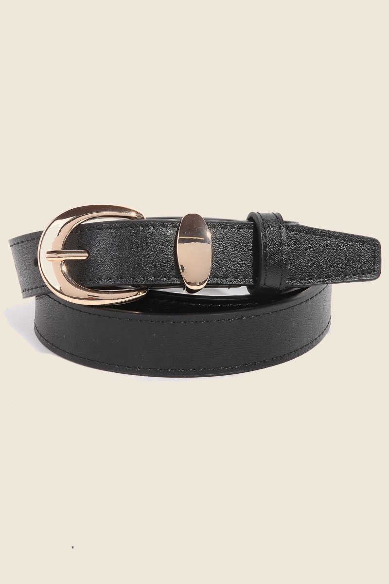 The perfect way to add some sparkle to your outfit, this leather belt encompasses a grand metallic crescent buckle design. Perfect for dressing up your favorite outfit, this leather belt is a must-have. Available in GBK, GBR, GKA, SBK. This item is sold in packs of 1.