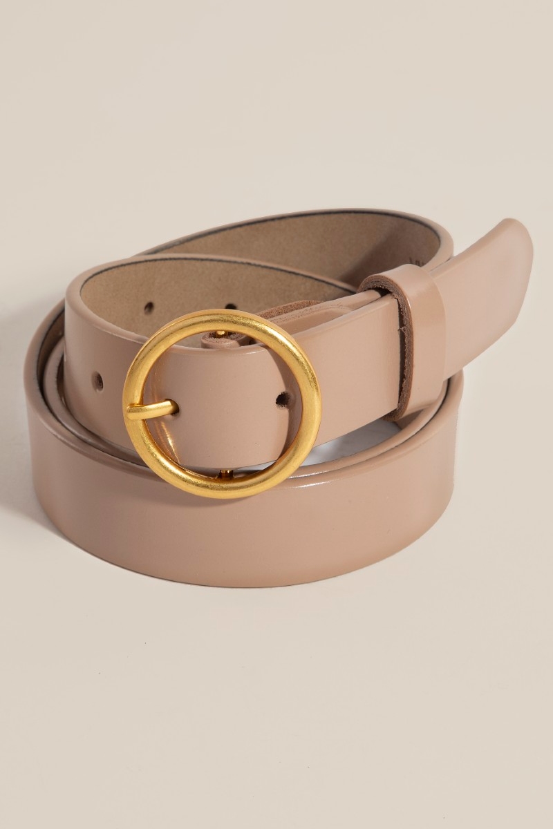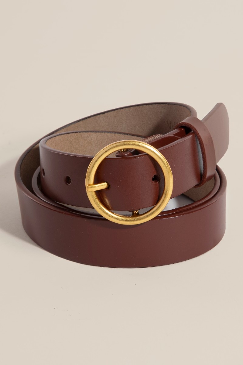 • A versatile and stylish addition to any wardrobe, this leather belt comes with a special round ring buckle design. Elevate your fashion statement with this versatile leather belt, adding a touch of glamour to your everyday look. Available in BR, GBK, IV, SBK. This item is sold in packs of 1.