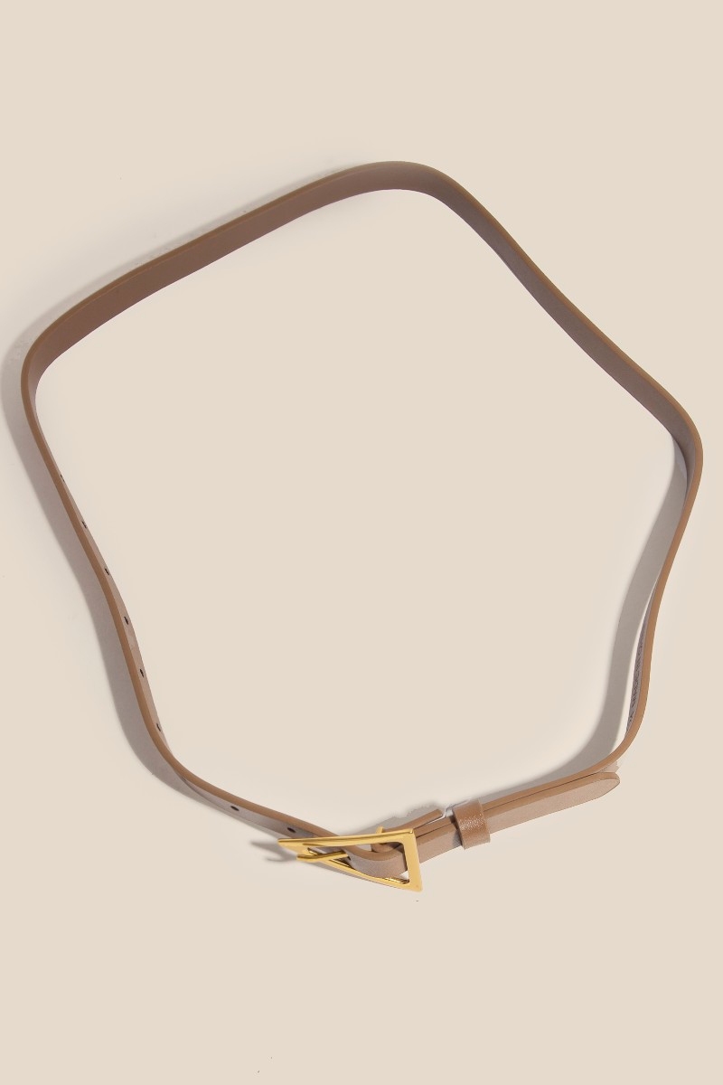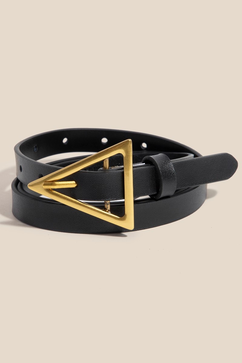 • A true work of art, this leather belt radiates a sleek triangle buckle design. Upgrade your fashion game with this versatile leather belt, a timeless addition that complements any outfit seamlessly. Available in GBK, GBR, GIV. This item is sold in packs of 1.