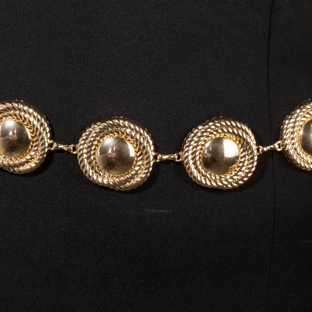 Chic, sophisticated, and always in style, this chain belt carries a charming metallic rope wrap disc design. Perfect for dressing up your favorite outfit, this chain belt is a must-have. Available in G, S. This item is sold in packs of 1.