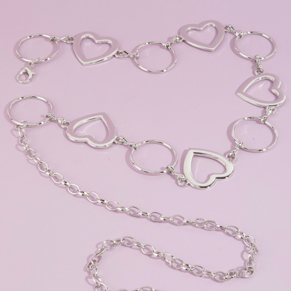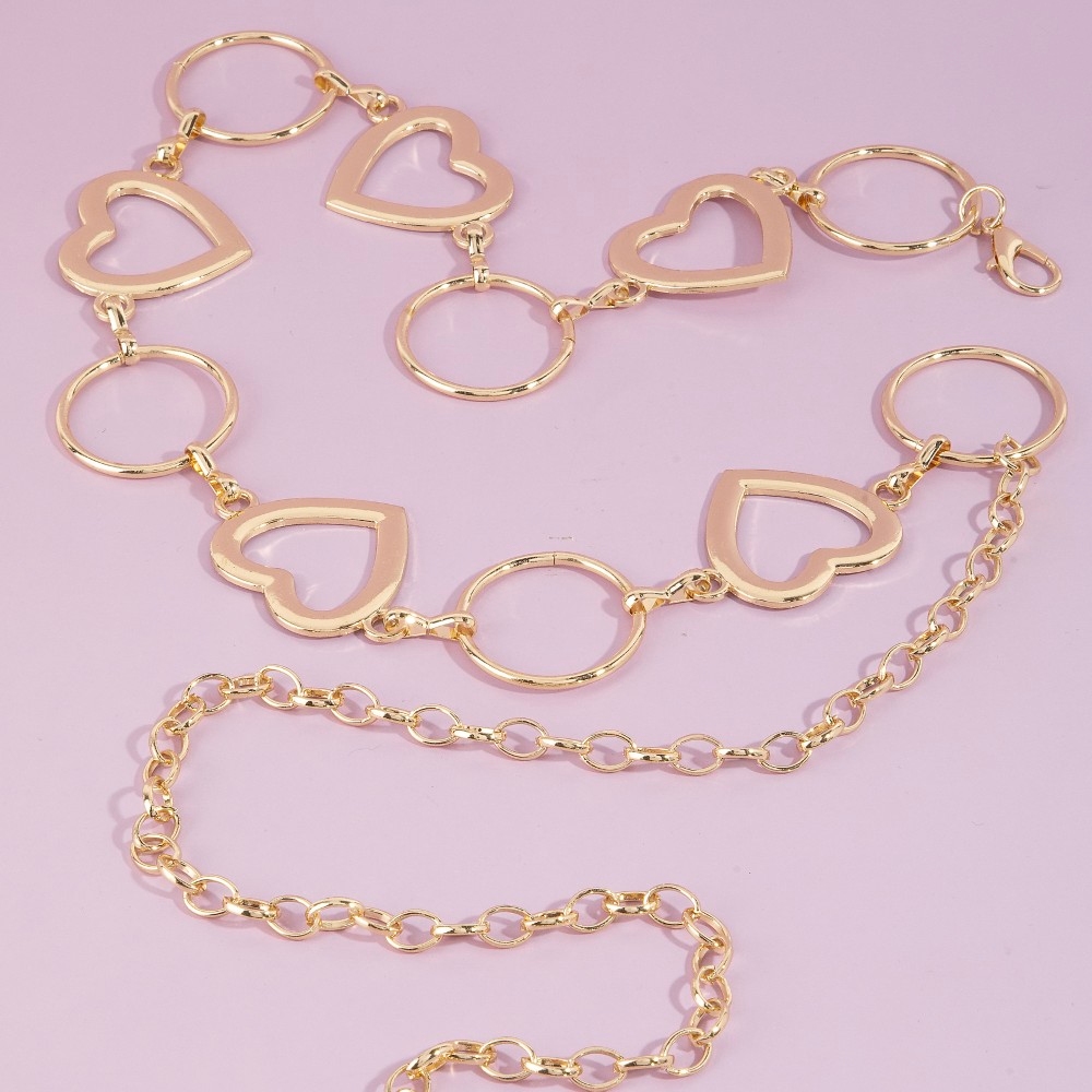 Perfect for any fashion-forward individual, this chain belt emanates an elegant open heart & circle mixed link design. Elevate your fashion ensemble effortlessly with this versatile chain belt, a stylish choice for the modern trendsetter. Available in G, RO. This item is sold in packs of 1.