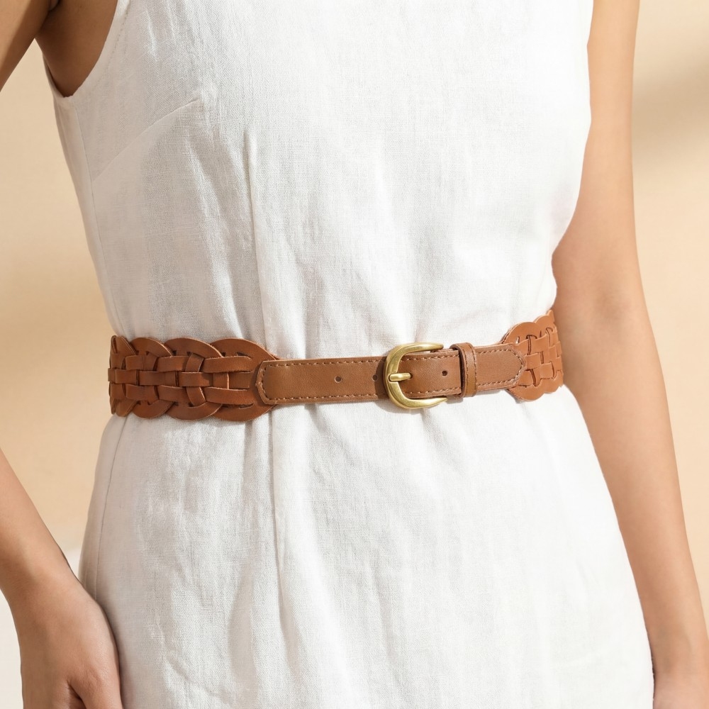Add a touch of luxury to any outfit, this leather belt exudes a refined oval braid design. Perfect for dressing up your favorite outfit, this leather belt is a must-have. Available in BR. This item is sold in packs of 1.