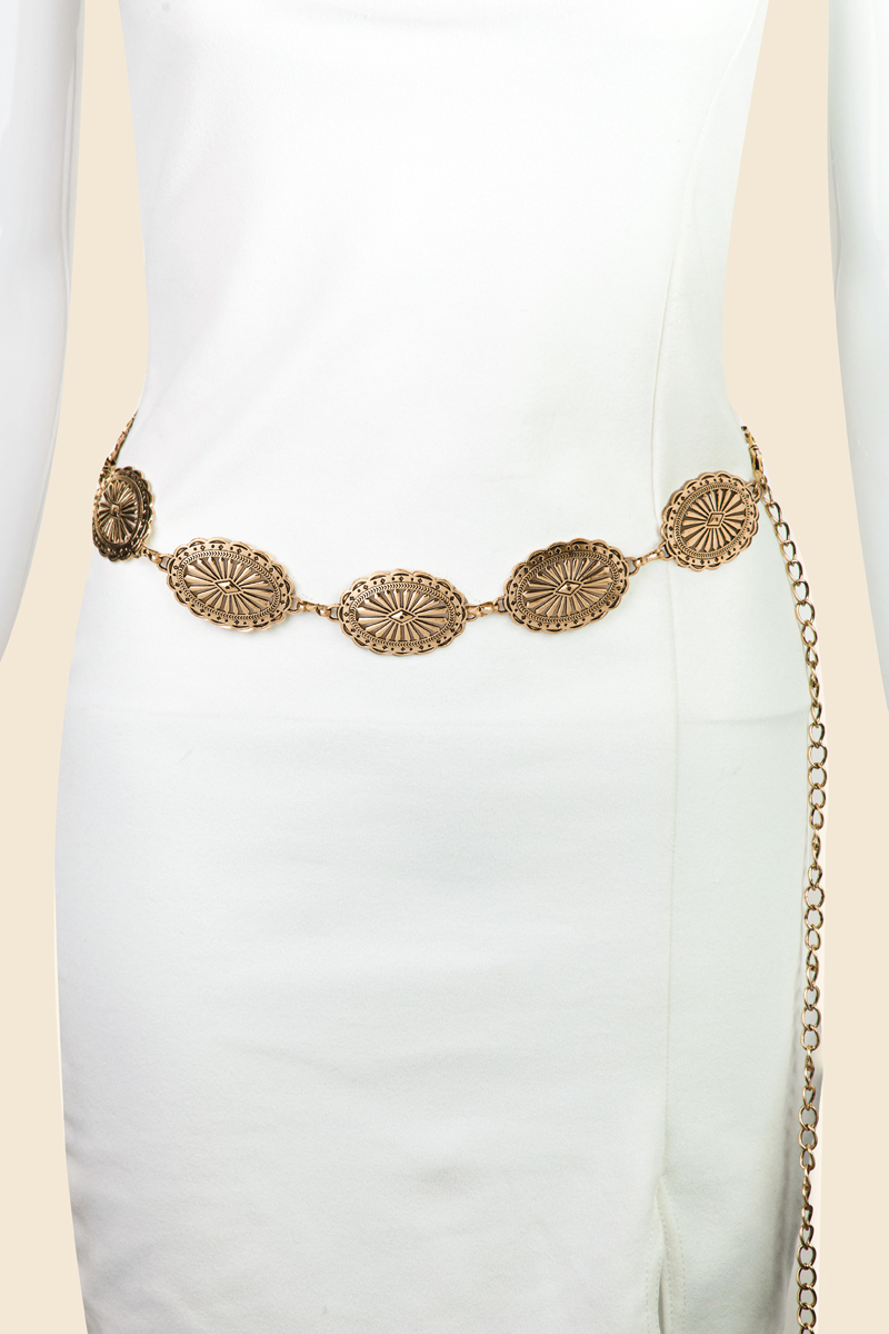 Hammered Metallic Oval Disc Chain Belt