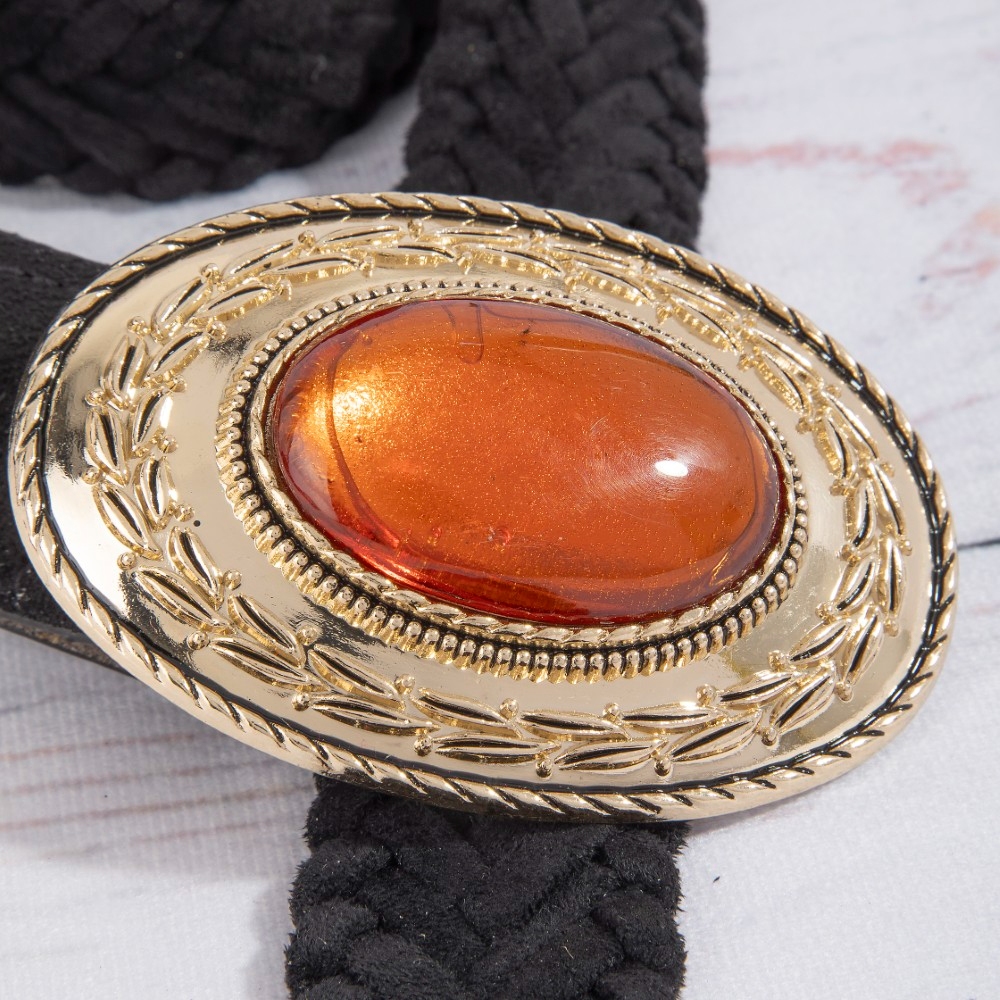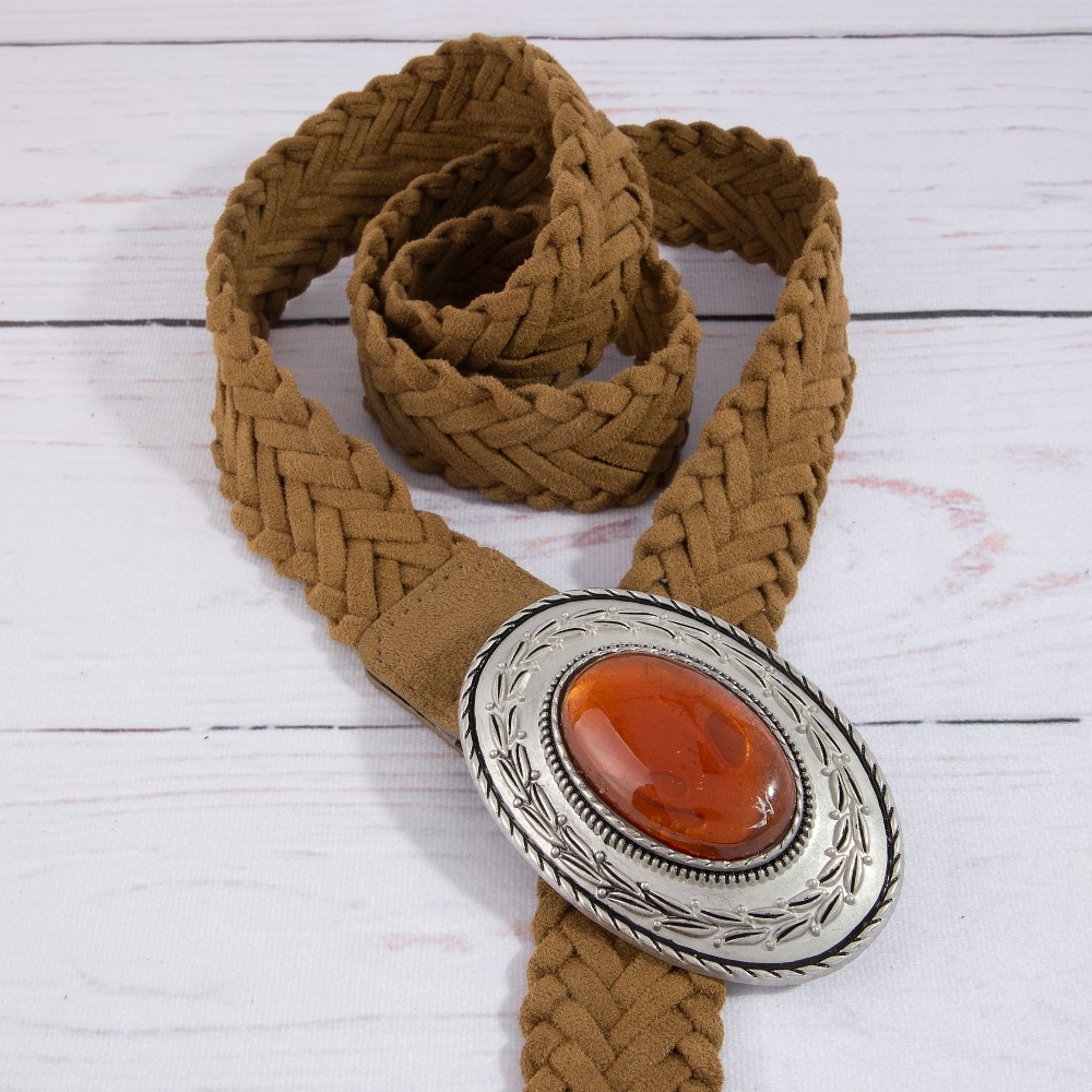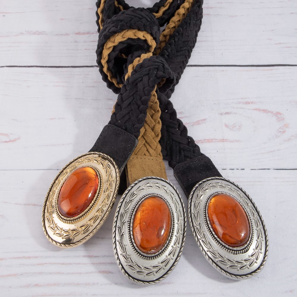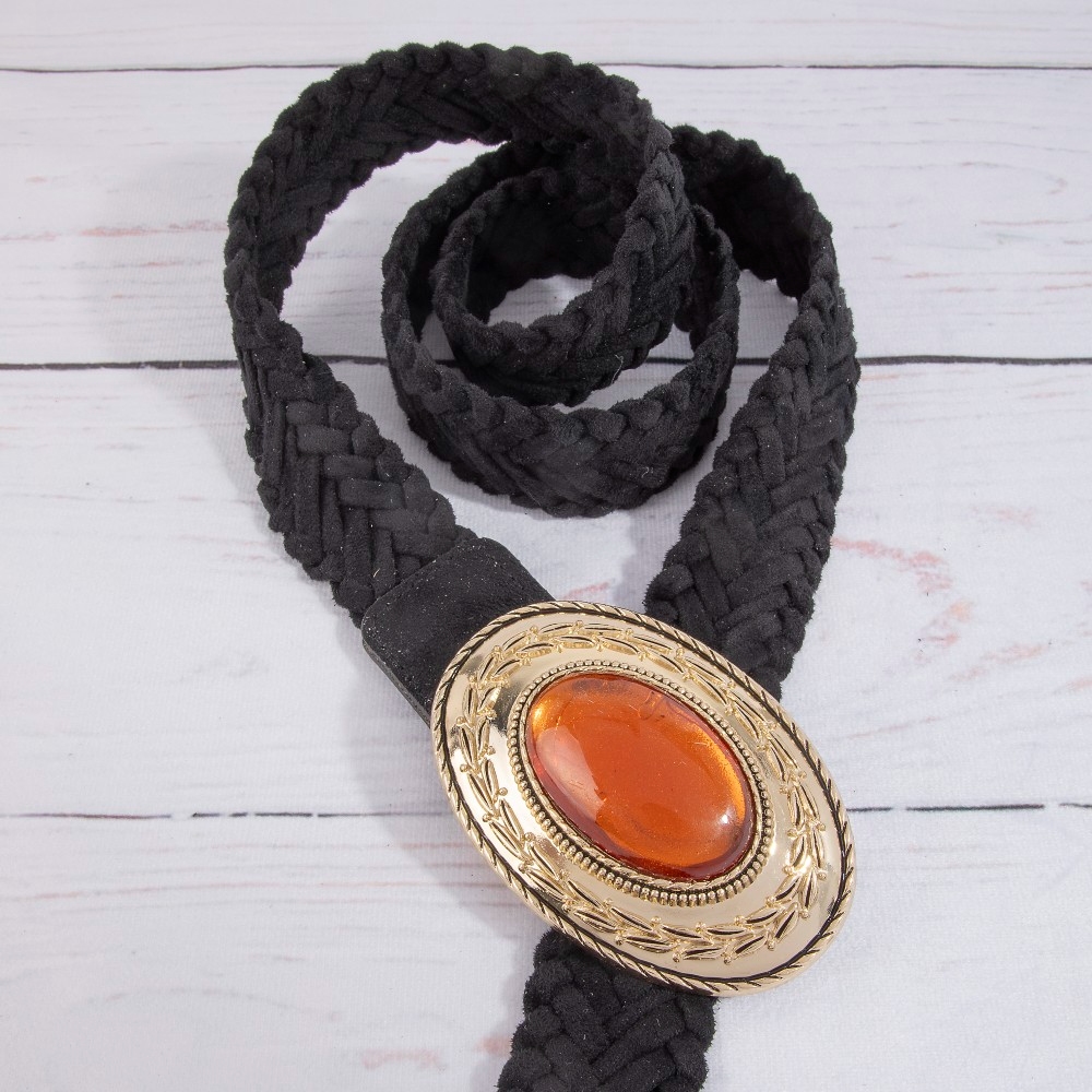 • A piece that will never go out of style, this braided belt exudes a refined oval shaped buckle vegan leather design. Elevate your fashion statement with this versatile braided belt, adding a touch of glamour to your everyday look. This item is sold in packs of 12.
