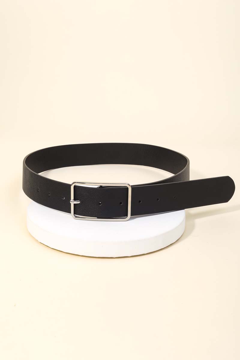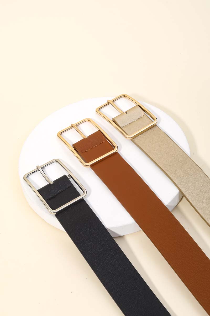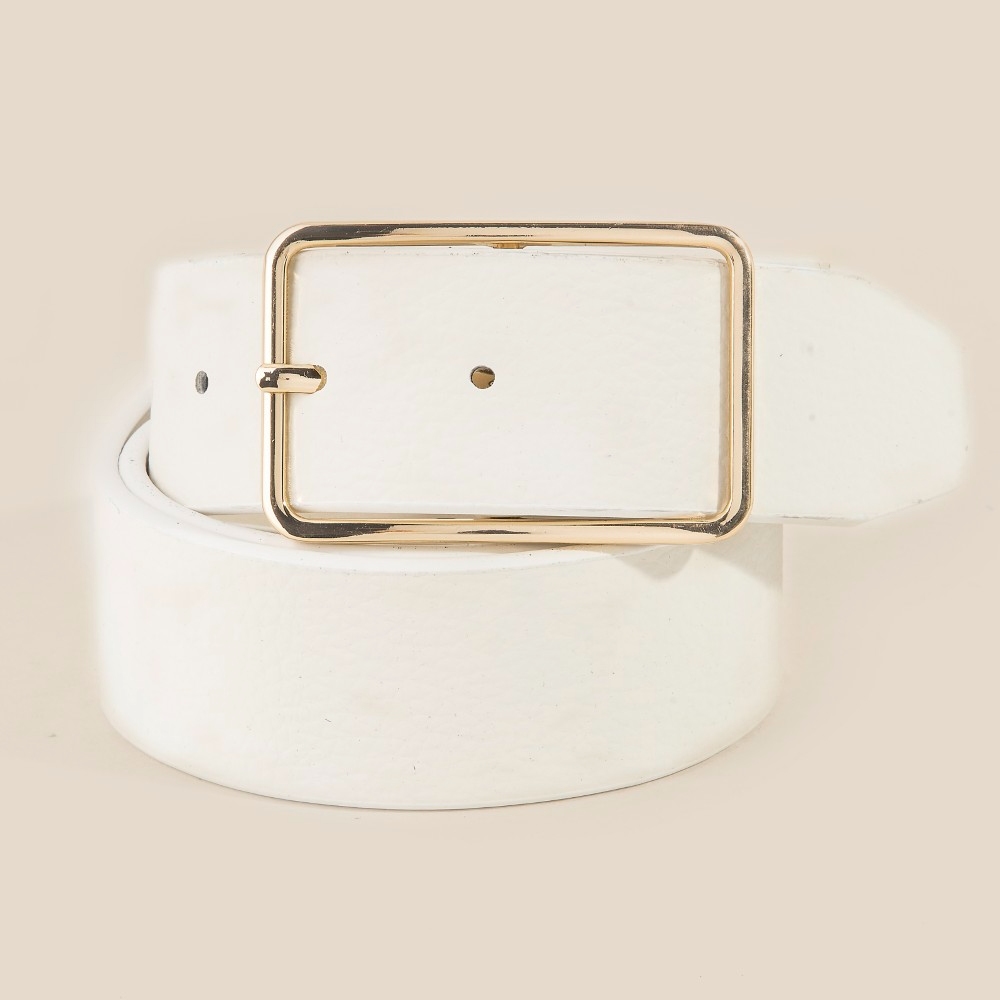 • A classic design with a contemporary twist, this leather belt showcases an alluring rectangle cutout buckle vegan design. This item is perfect for anyone who loves to accessorize and add some personality to their outfits. Available in BR, GB, IV, SB. This item is sold in packs of 12.
