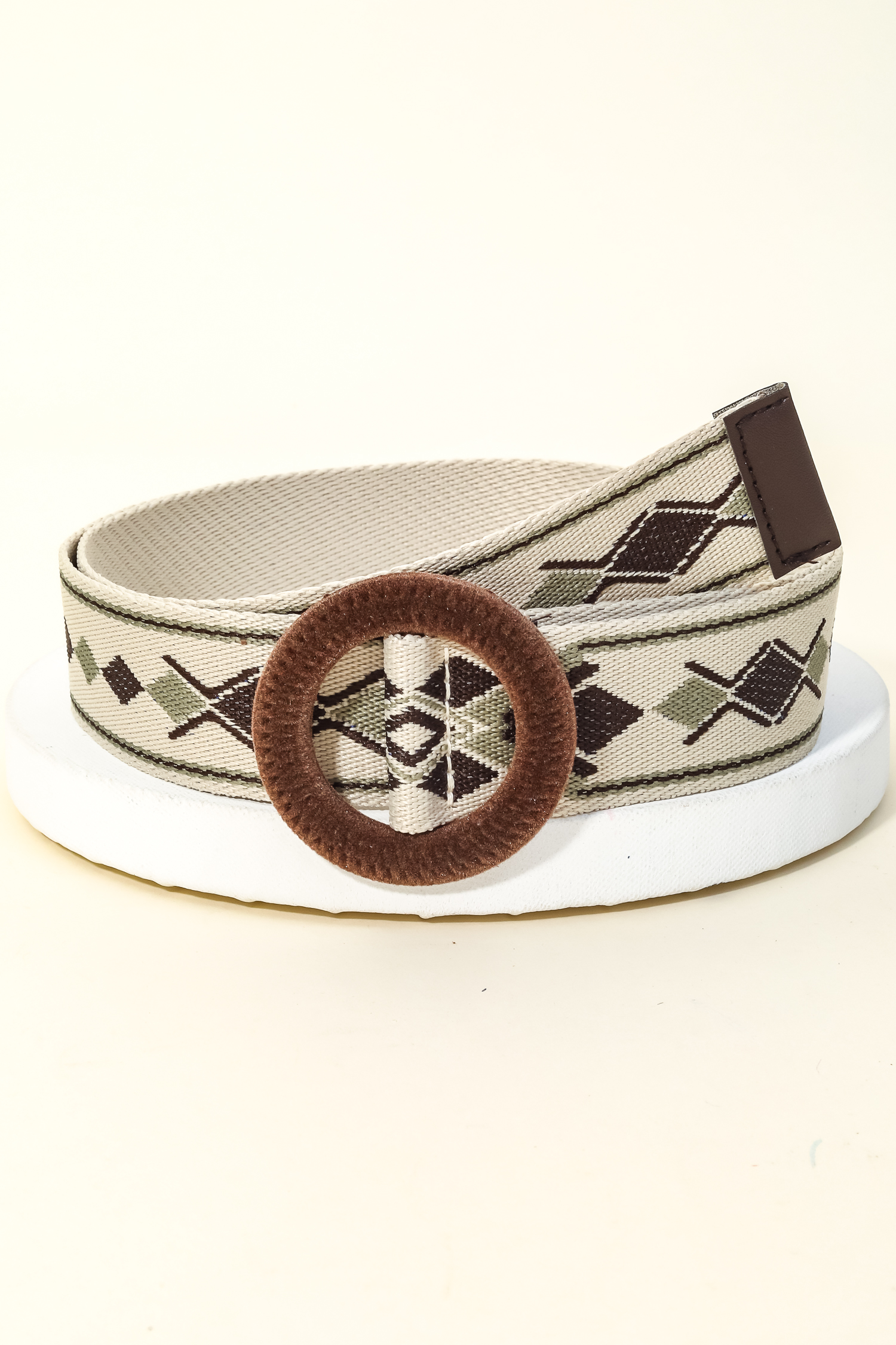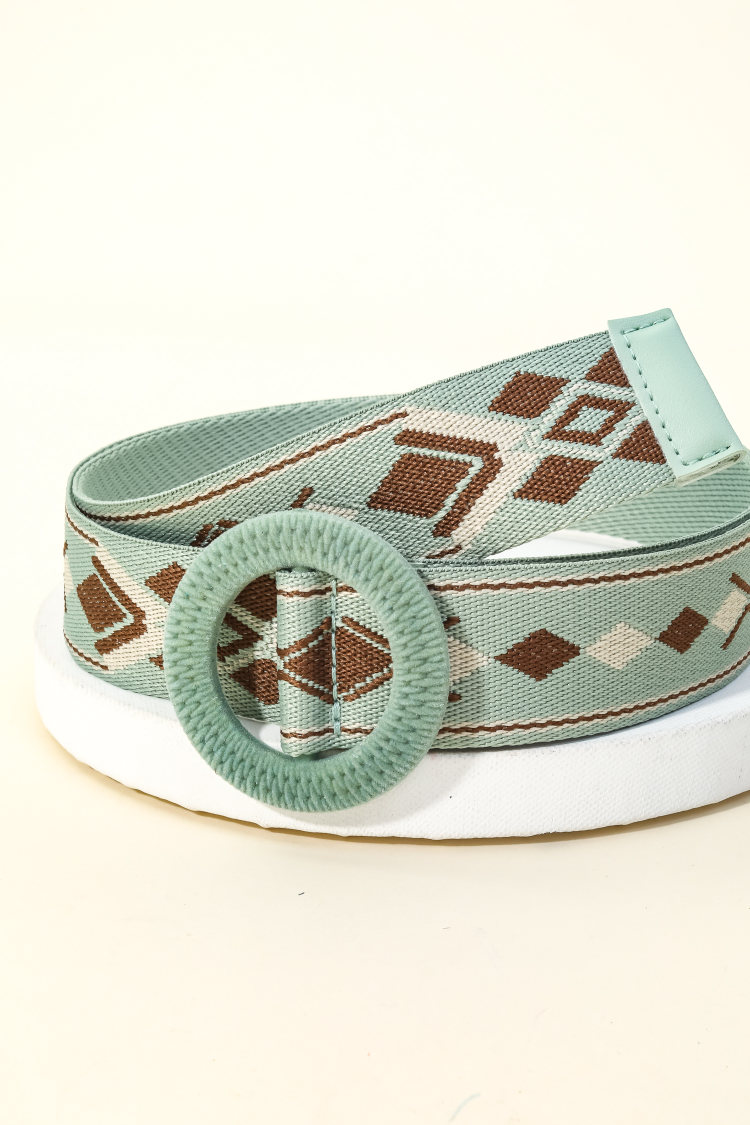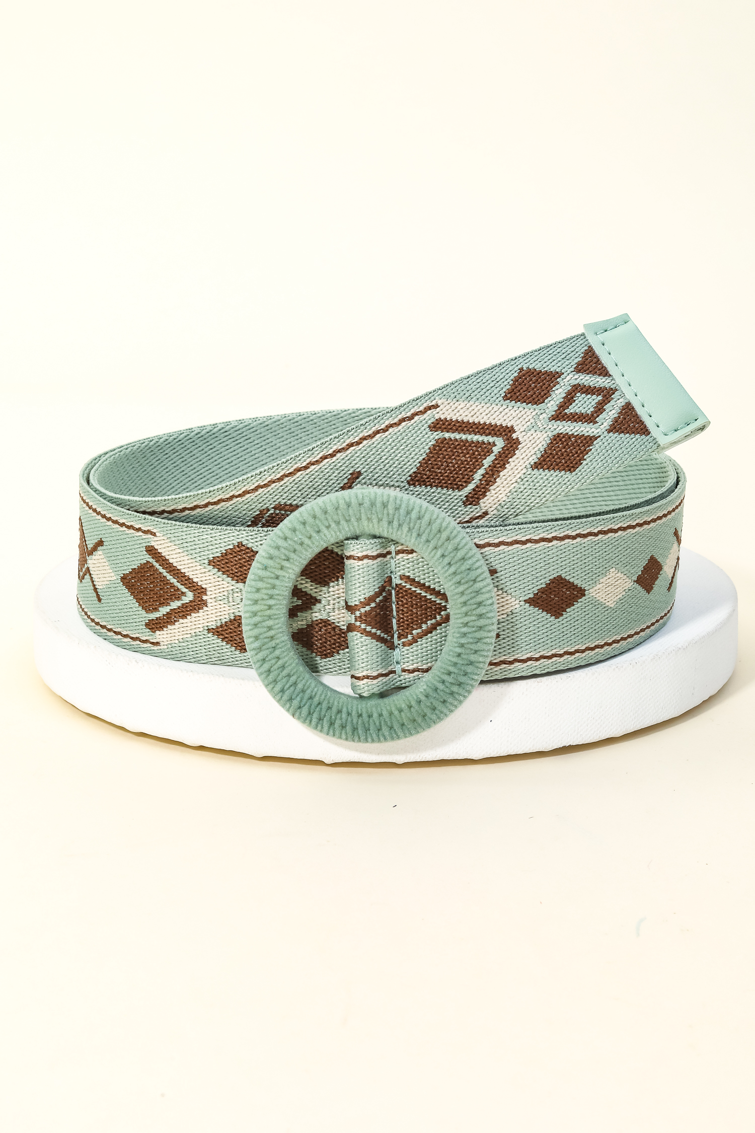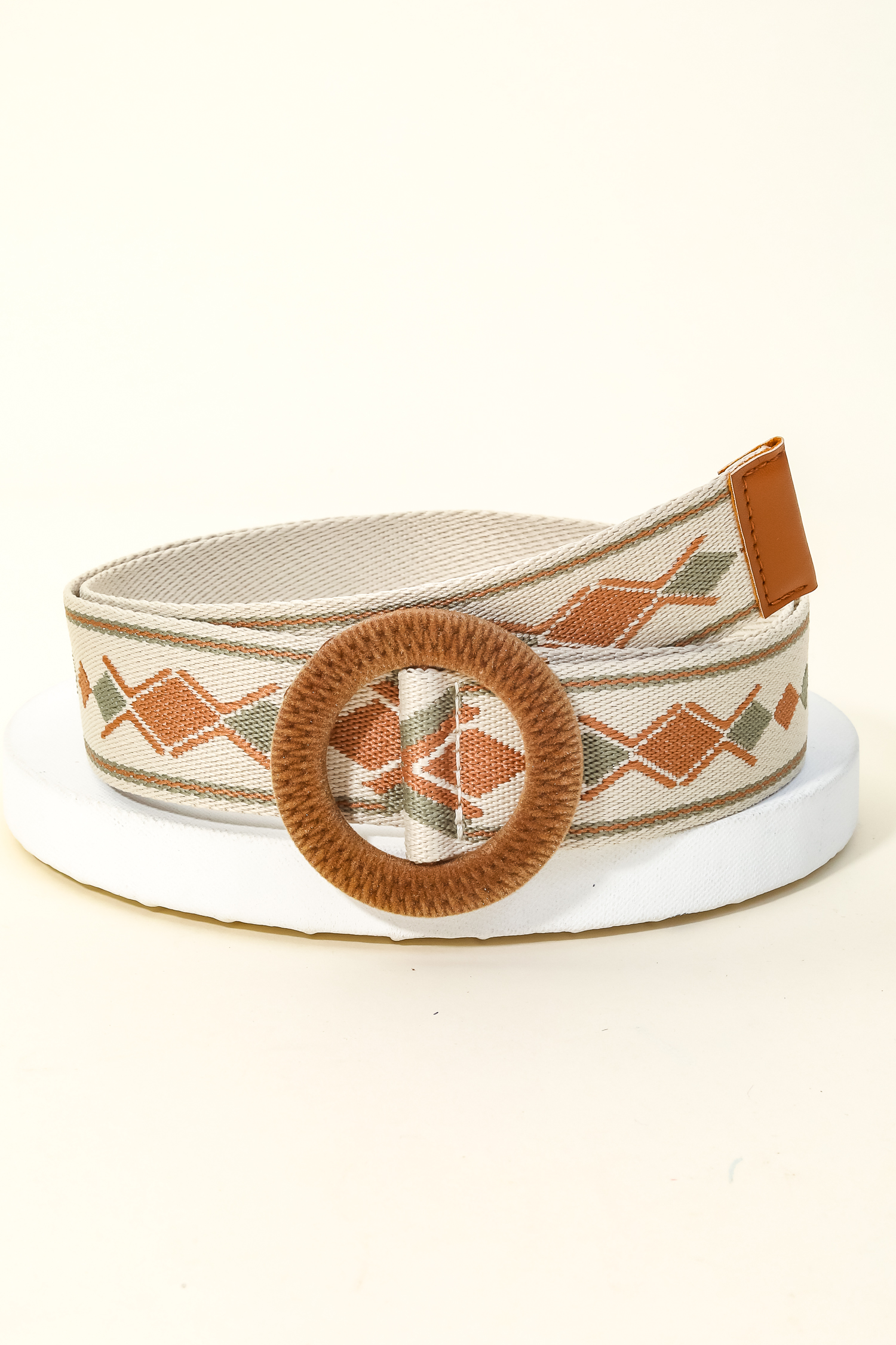 Hammered Oval Buckle Embroidered Vegan Leather Belt