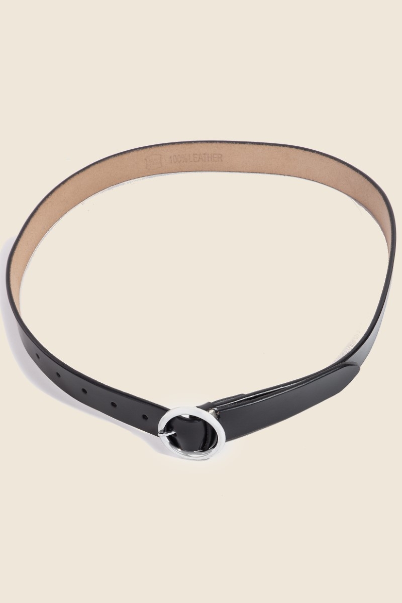 Add some edge to your look, this leather belt boasts a magnificent round ring buckle design. Unleash the power of style with this versatile leather belt, perfect for enhancing the charm of your wardrobe. Available in GBK, SBK, BR and IV. This item is sold in packs of 1.
