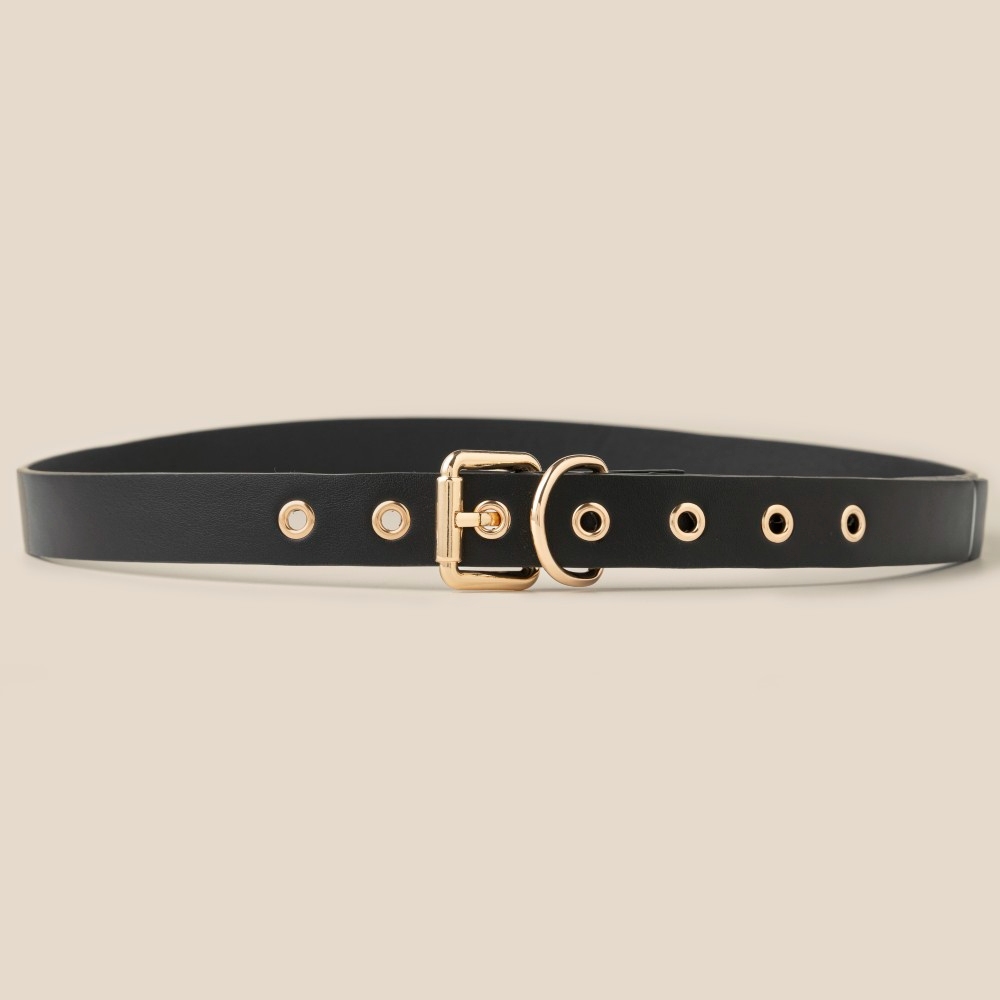 • This faux leather belt is made with 90% Polyurethane and 10% Alloy.