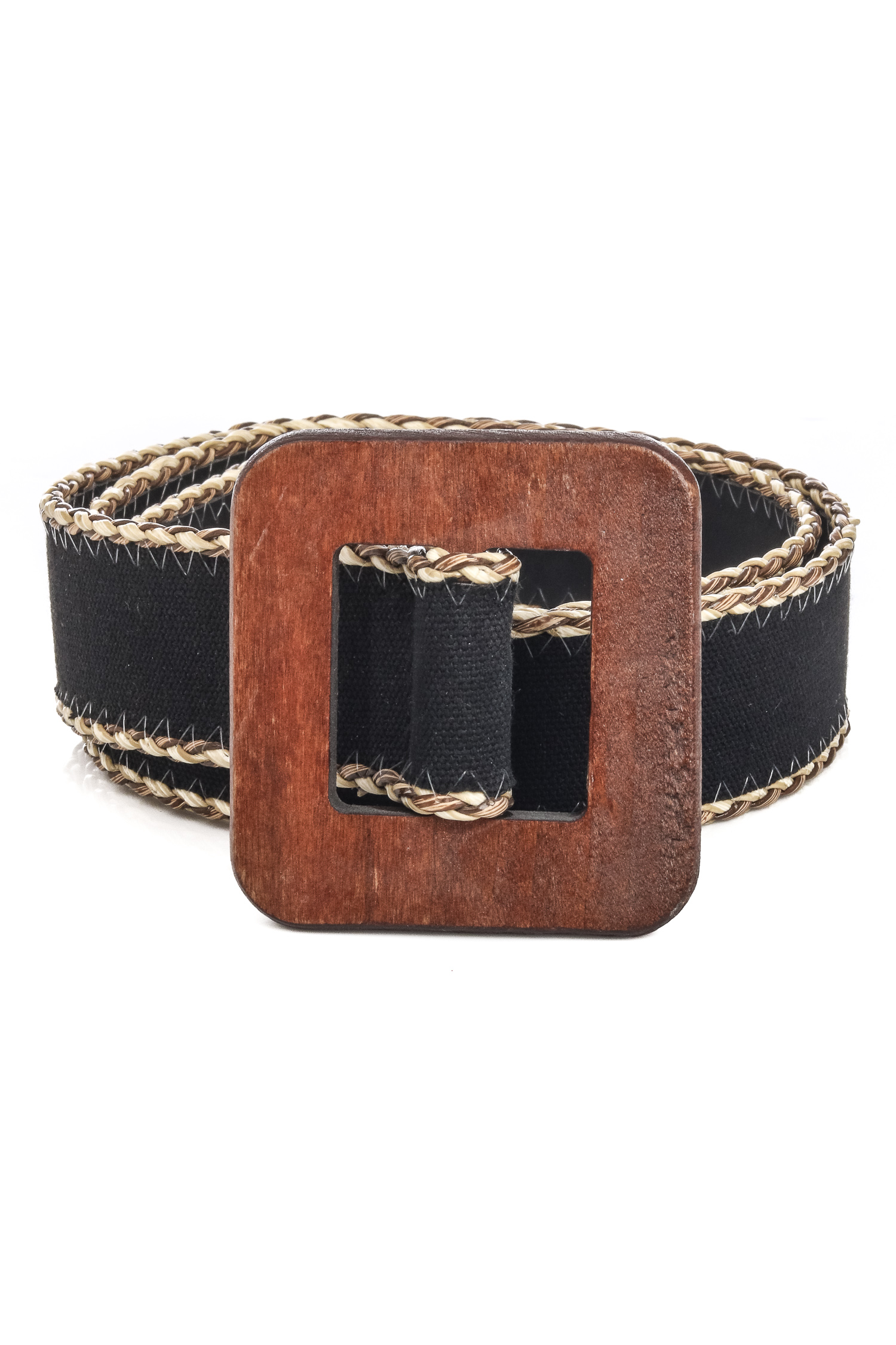 Square Wooden Buckle Fabric Belt