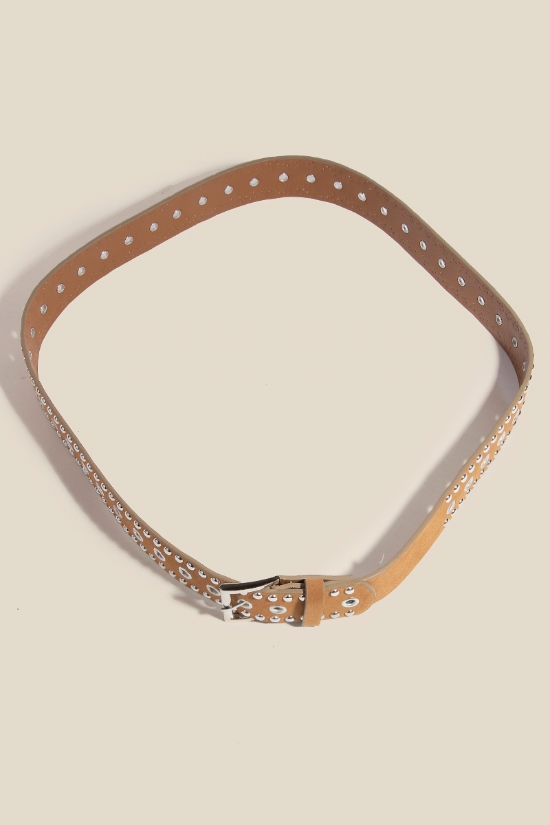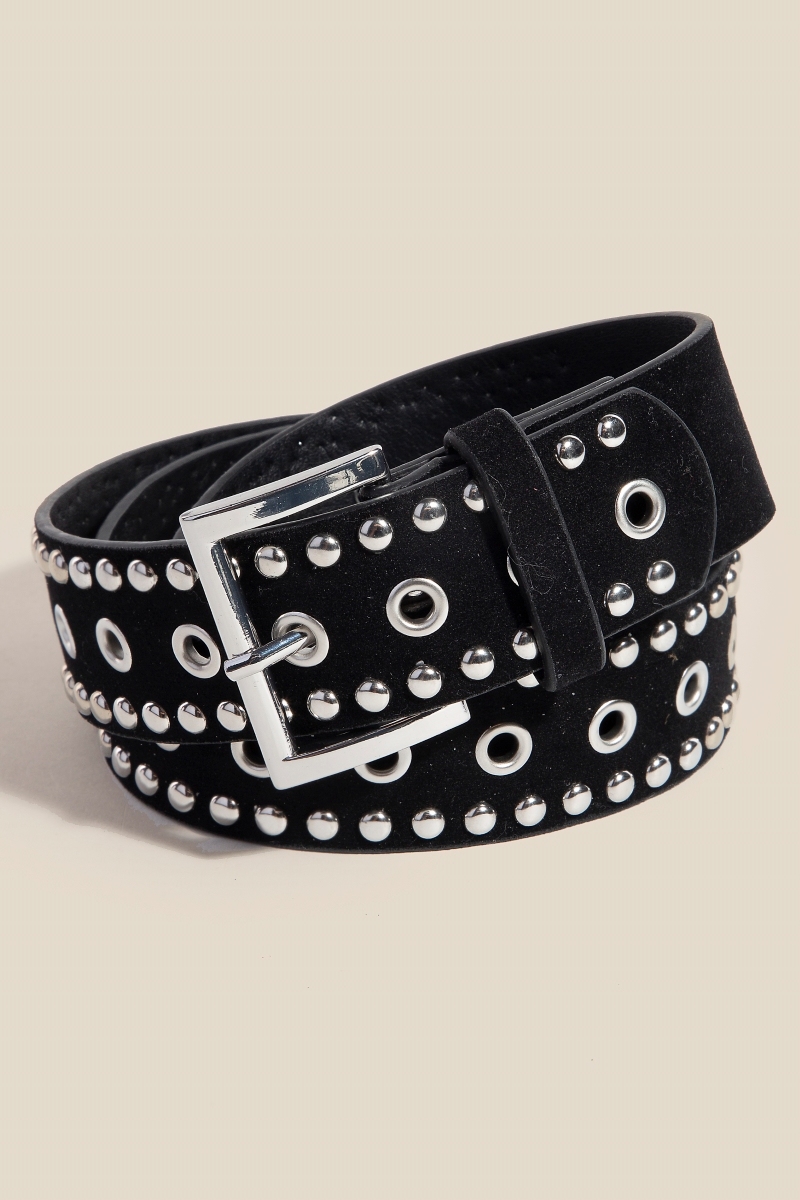 - Unleash your inner fashionista, this belt features an exceptional studded grommet faux suede design. Unleash the charm of this versatile belt, effortlessly turning any outfit into a fashion statement. Available in SBK, SDBR, SLBR. This item is sold in packs of 1.