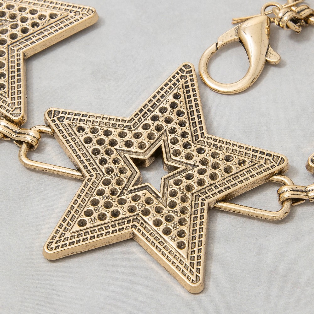 • A modern classic, this chain belt contains a special textured star link design. This chain belt is a great way to add some flair to your outfit without going over the top. Available in S. This item is sold in packs of 1.