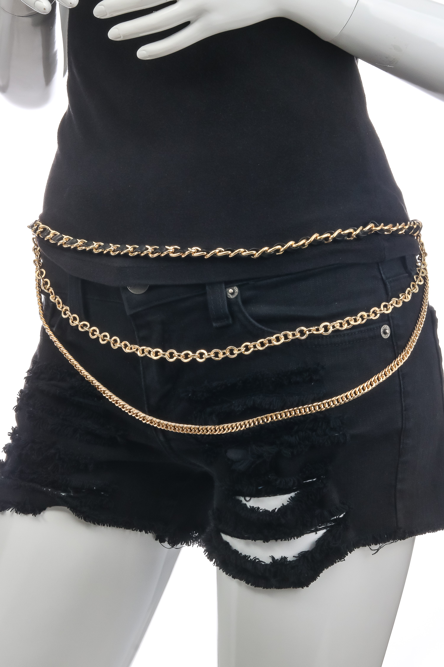 • Classy, Flashy, and everything in between must have belt has a unique triple styled layered chain belt design. This is an absolute must have for any wardrobe. Available in Gold.
