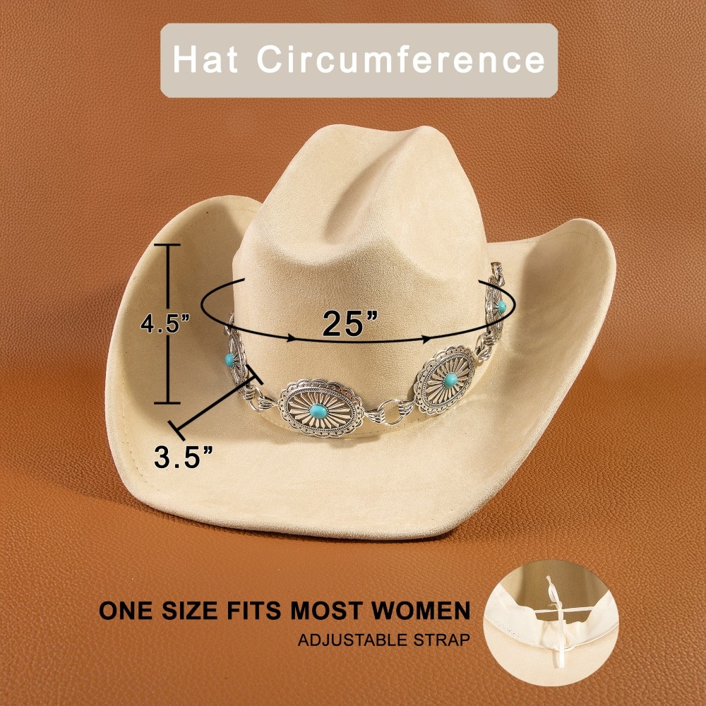 - The perfect way to complete any outfit, this cowboy hat showcases a breathtaking turquoise stud concho belt western design. This cowboy hat is the perfect way to add a touch of elegance to any outfit. Available in BR, IV, GBK, KA, RD and SBK. This item is sold in packs of 1.