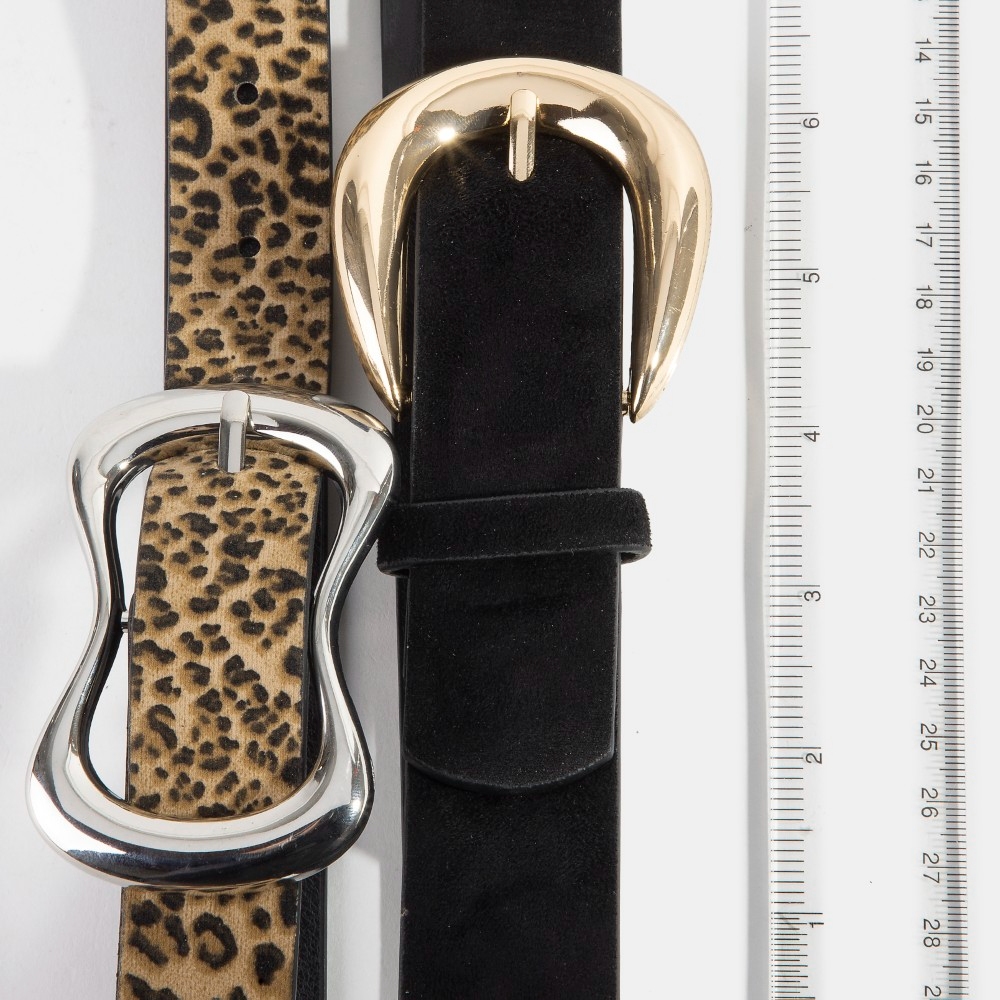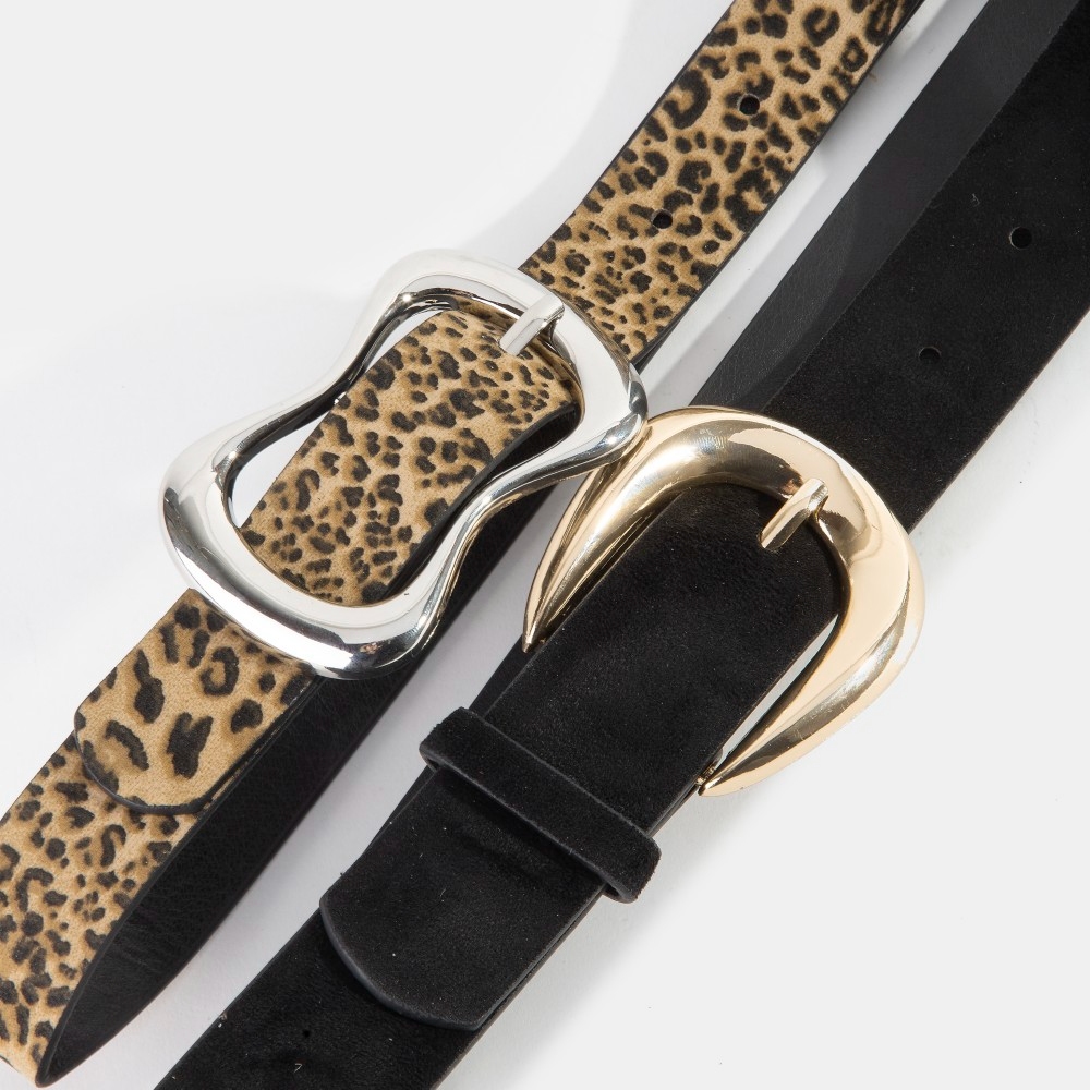 Black And Leopard Print Vegan Leather Belt Set