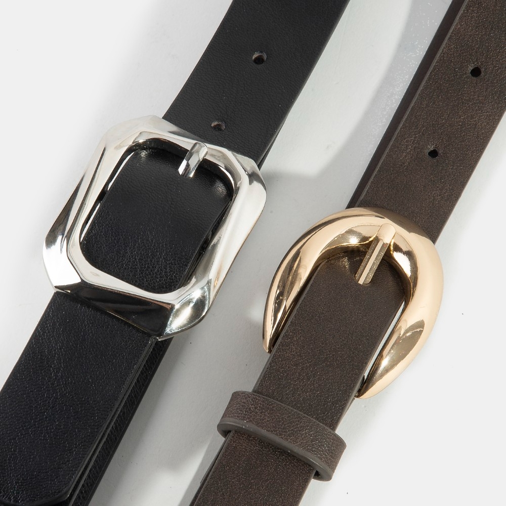 Assorted Two Piece Oval Buckle Vegan Leather Belt Set
